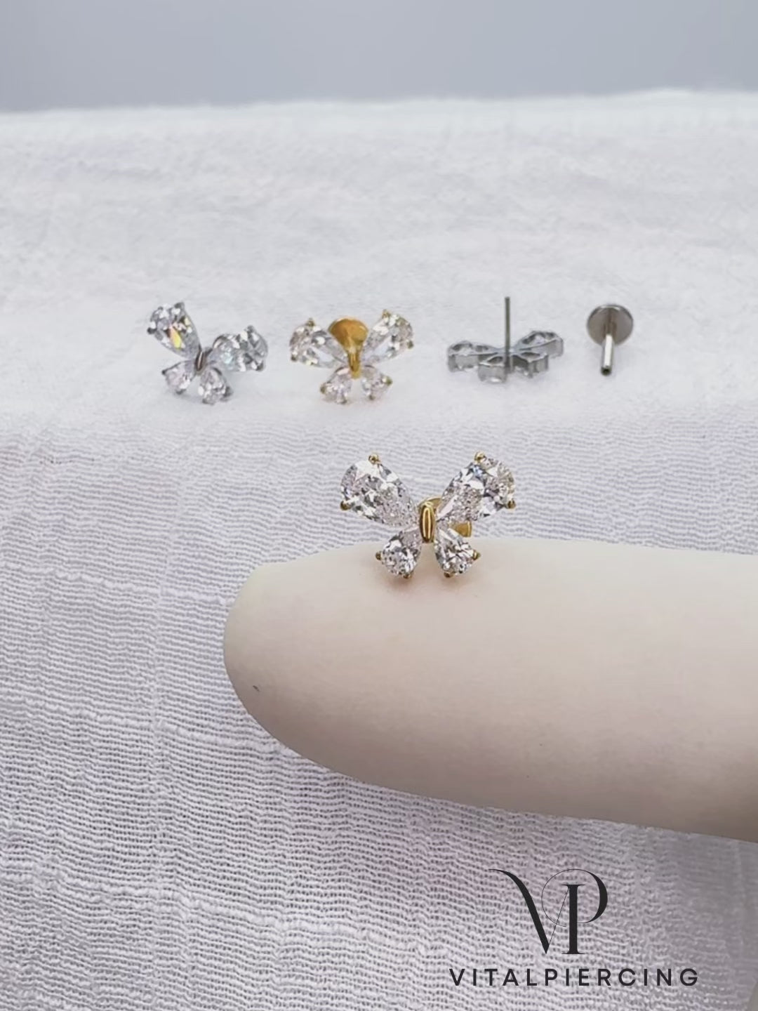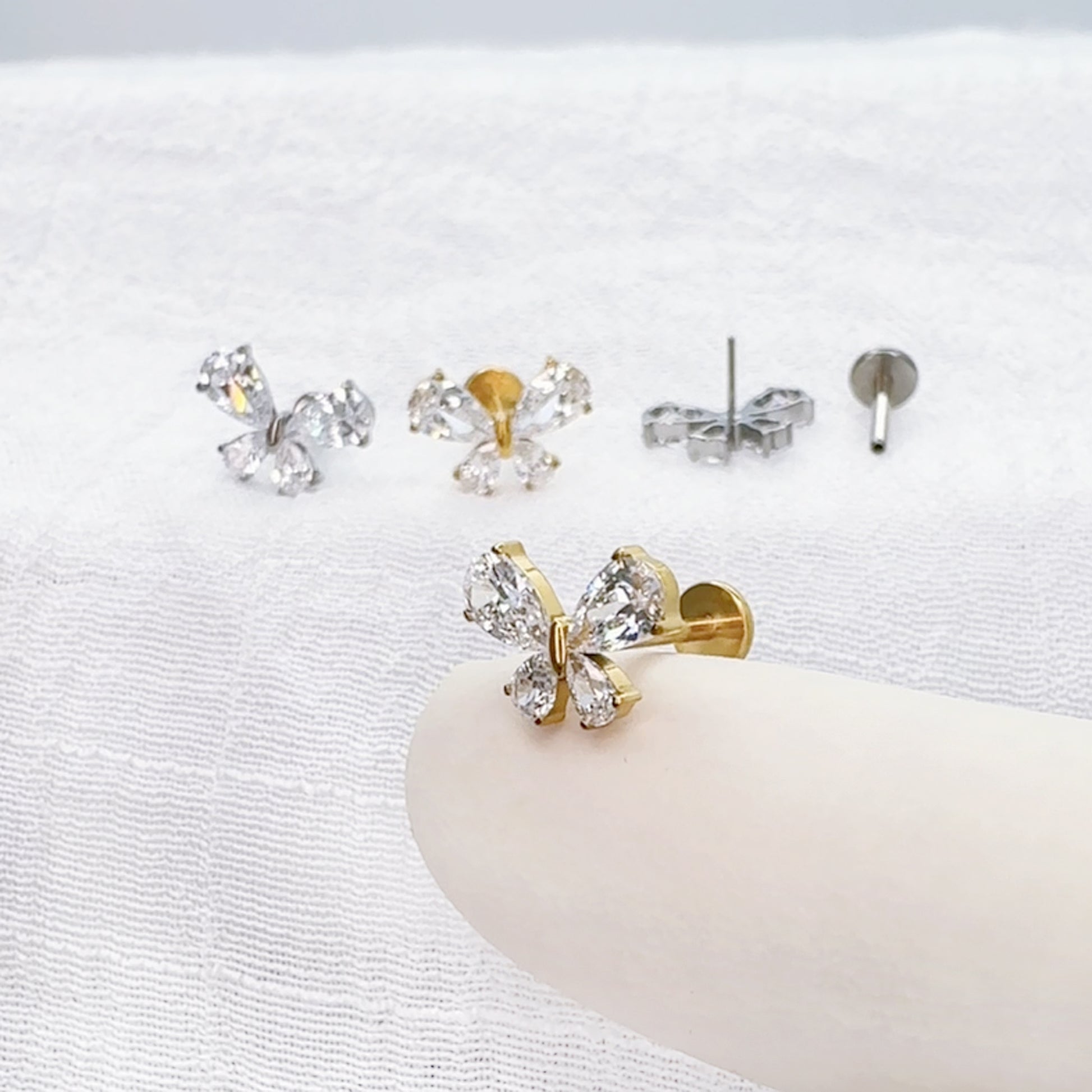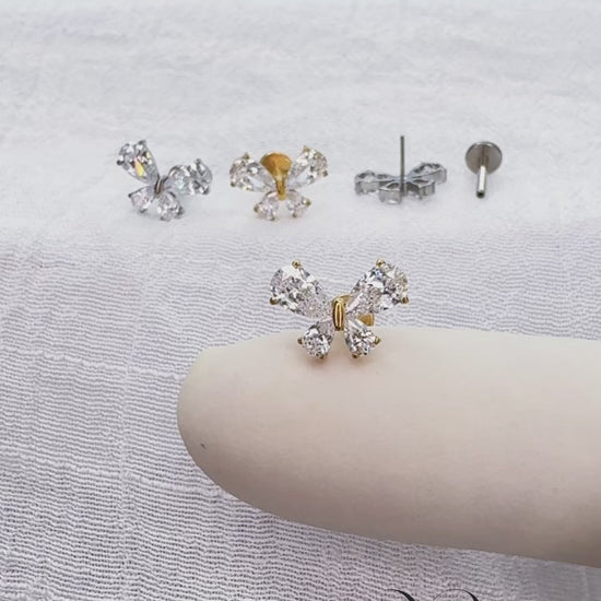 ✨ Titanium Threadless Push In CZ Butterfly Top Labret Bar Stud