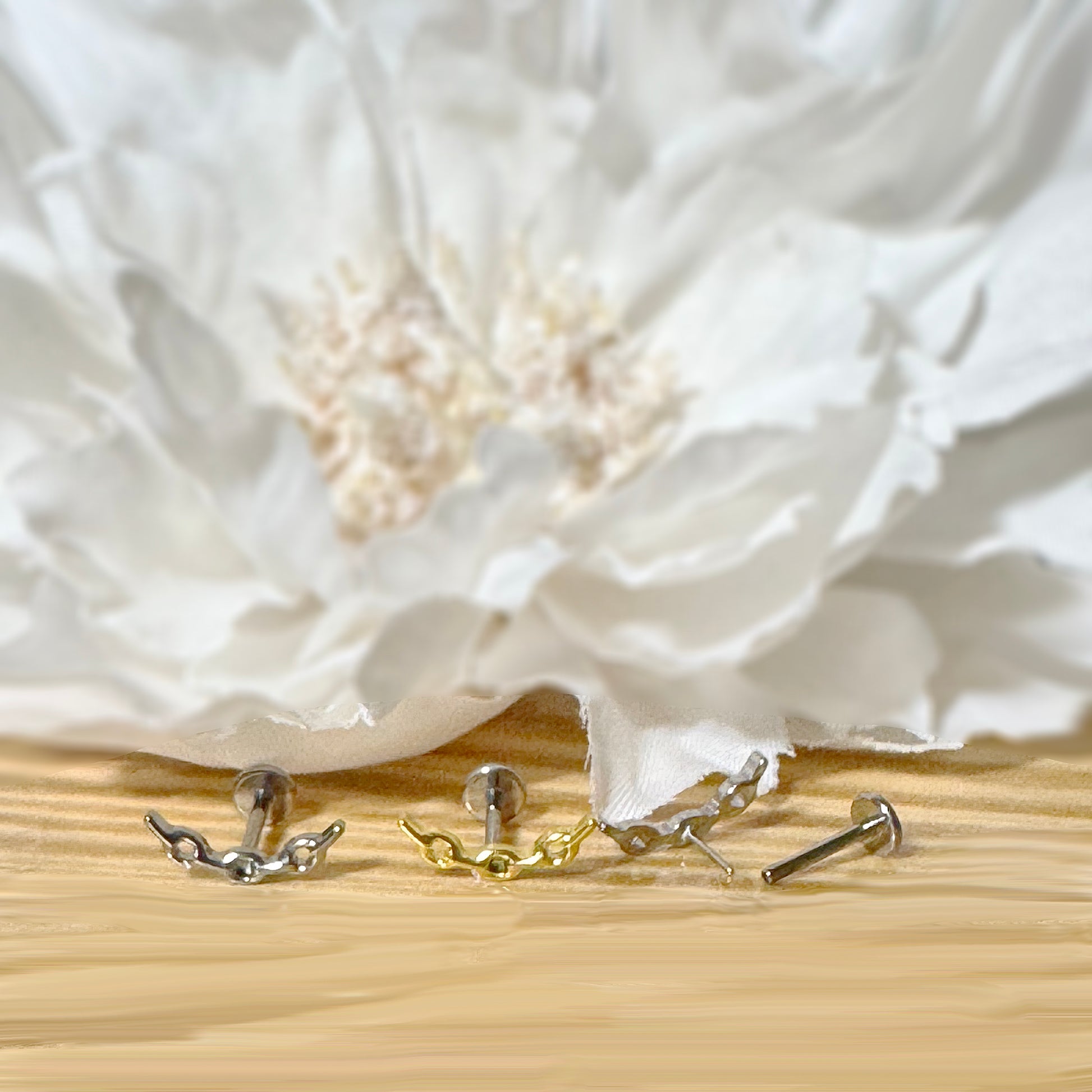 ✨ Titanium Threadless Push In Curved Chain Link Top Labret Bar Stud