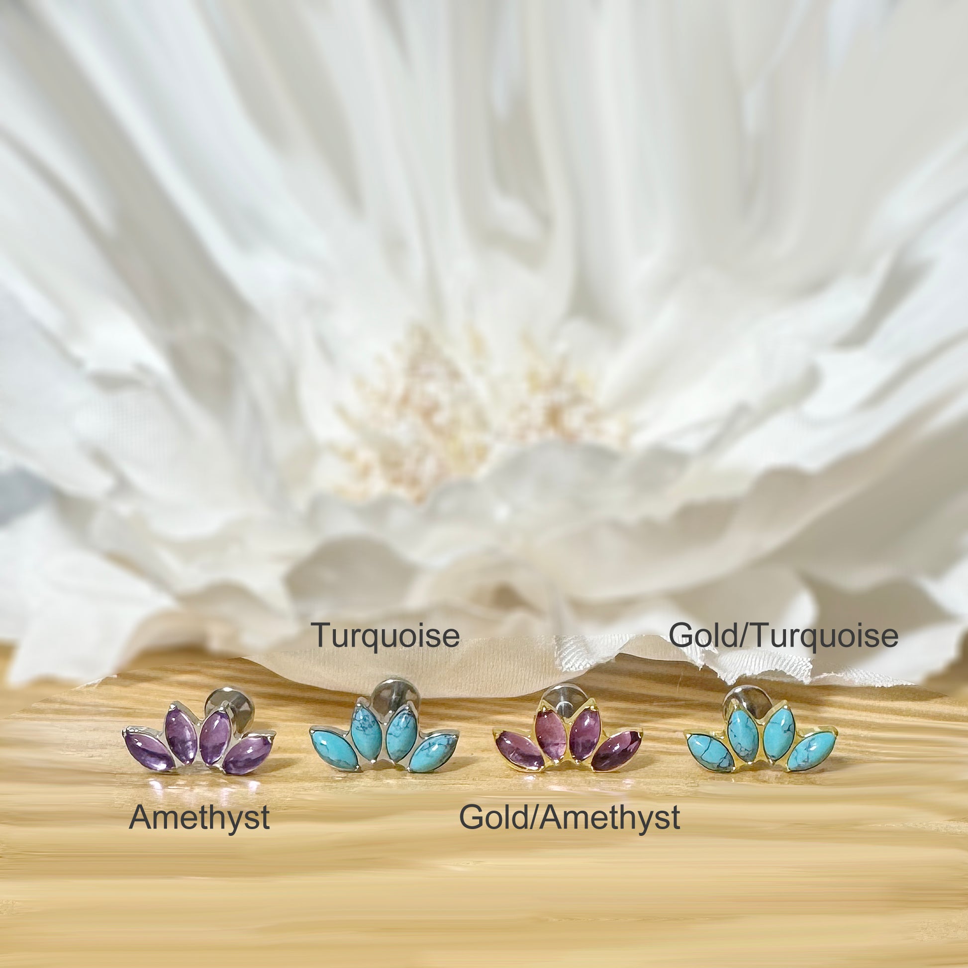 ✨ Titanium Marquise Natural Stone Top Threadless Labret