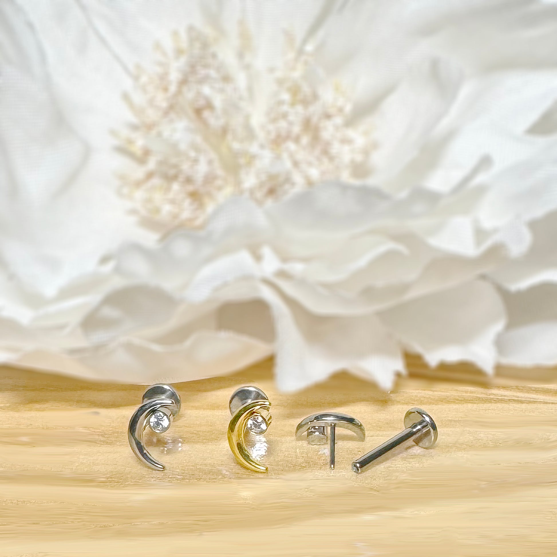 ✨ Titanium Crescent Moon CZ Top Threadless Labret