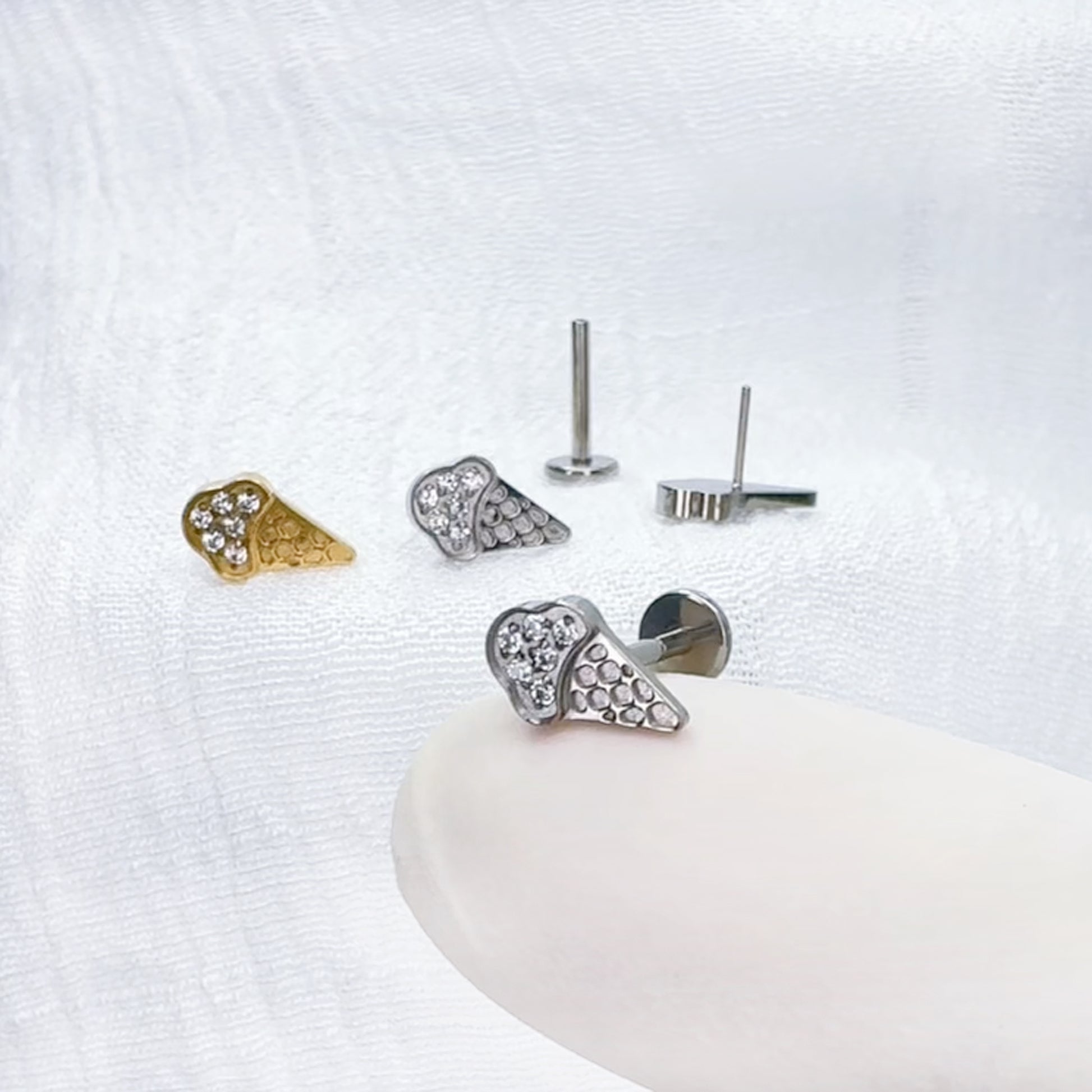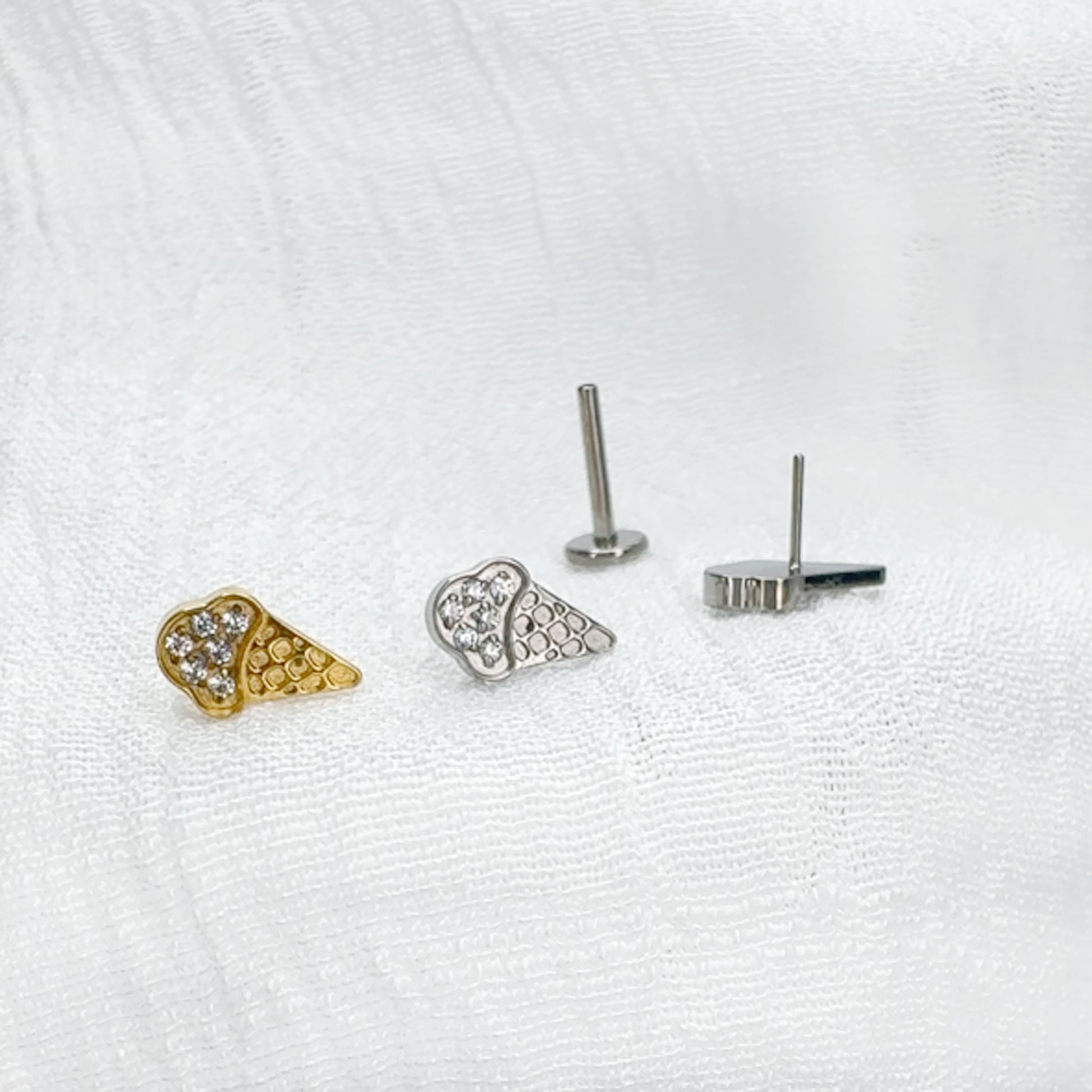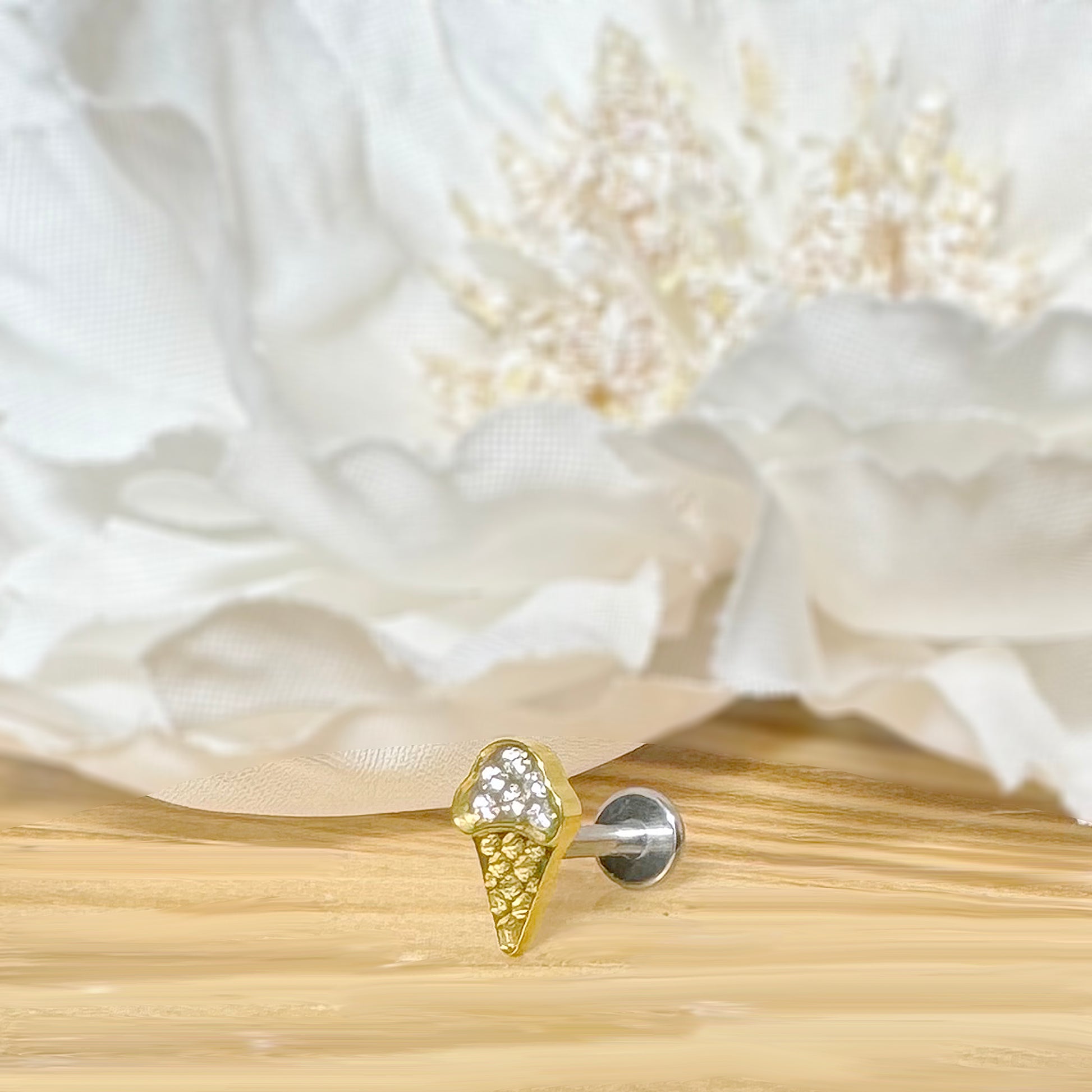 ✨ Titanium Ice Cream Cone CZ Top Threadless Labret