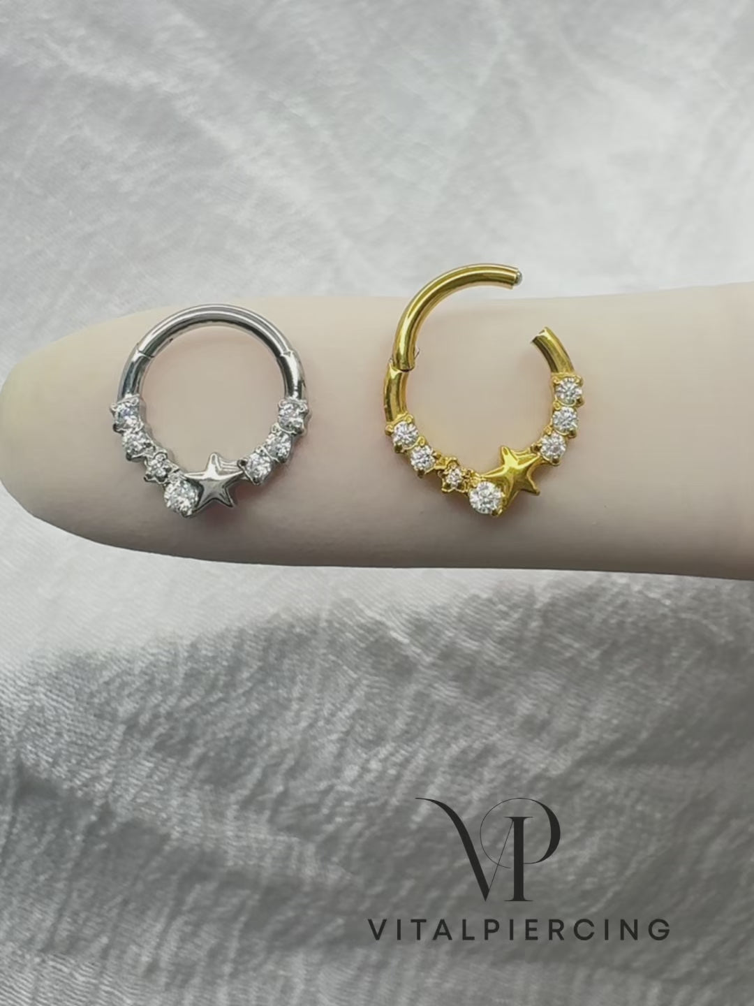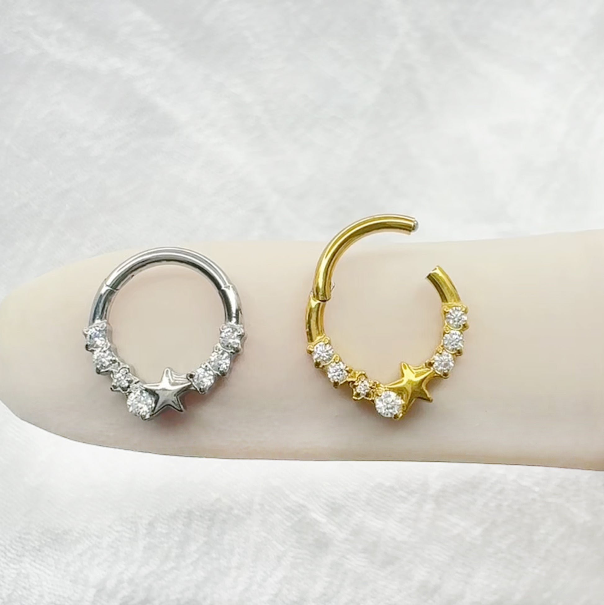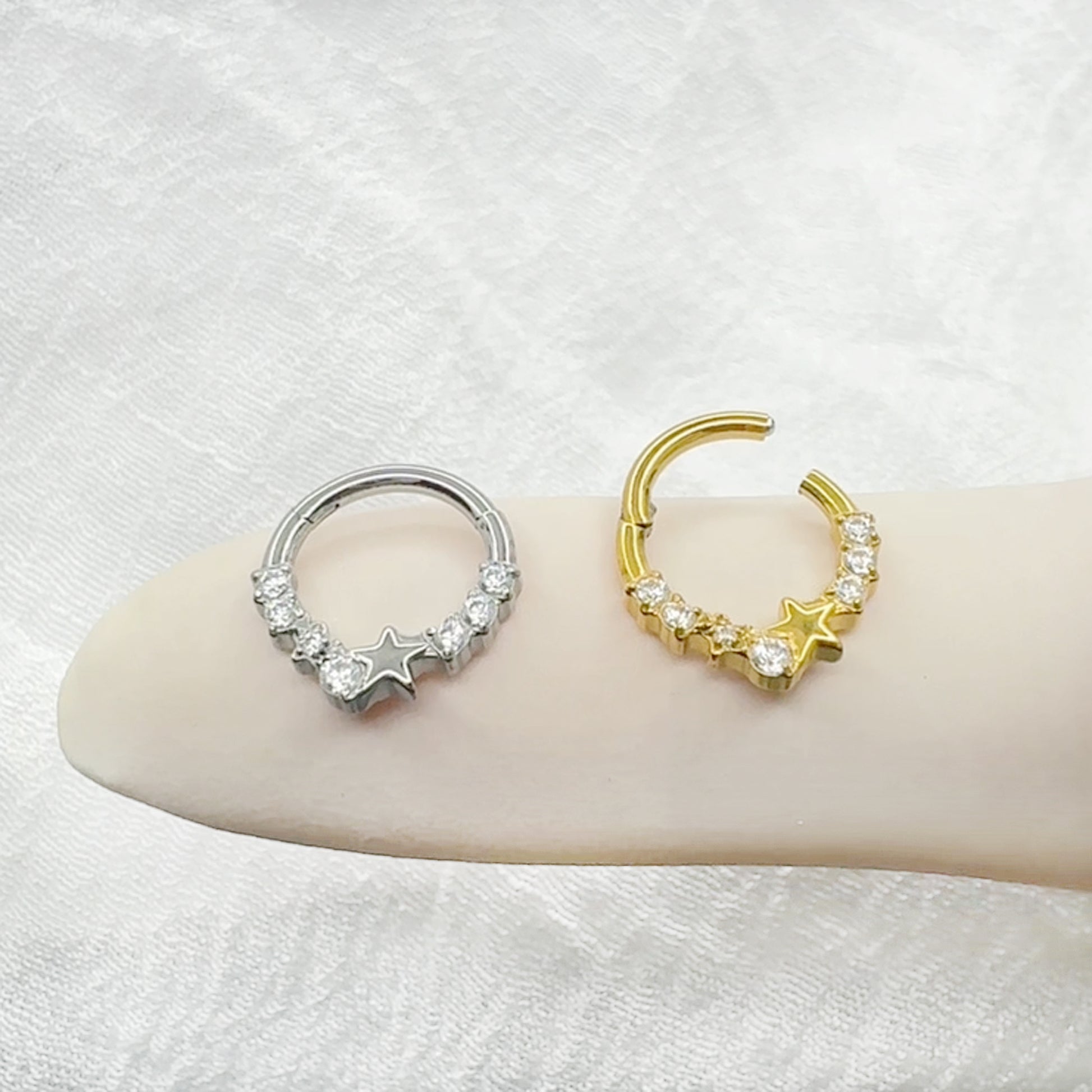 ✨ 16G 316L Surgical Steel Star and CZ Center Hinged Segment Hoop with Front CZ