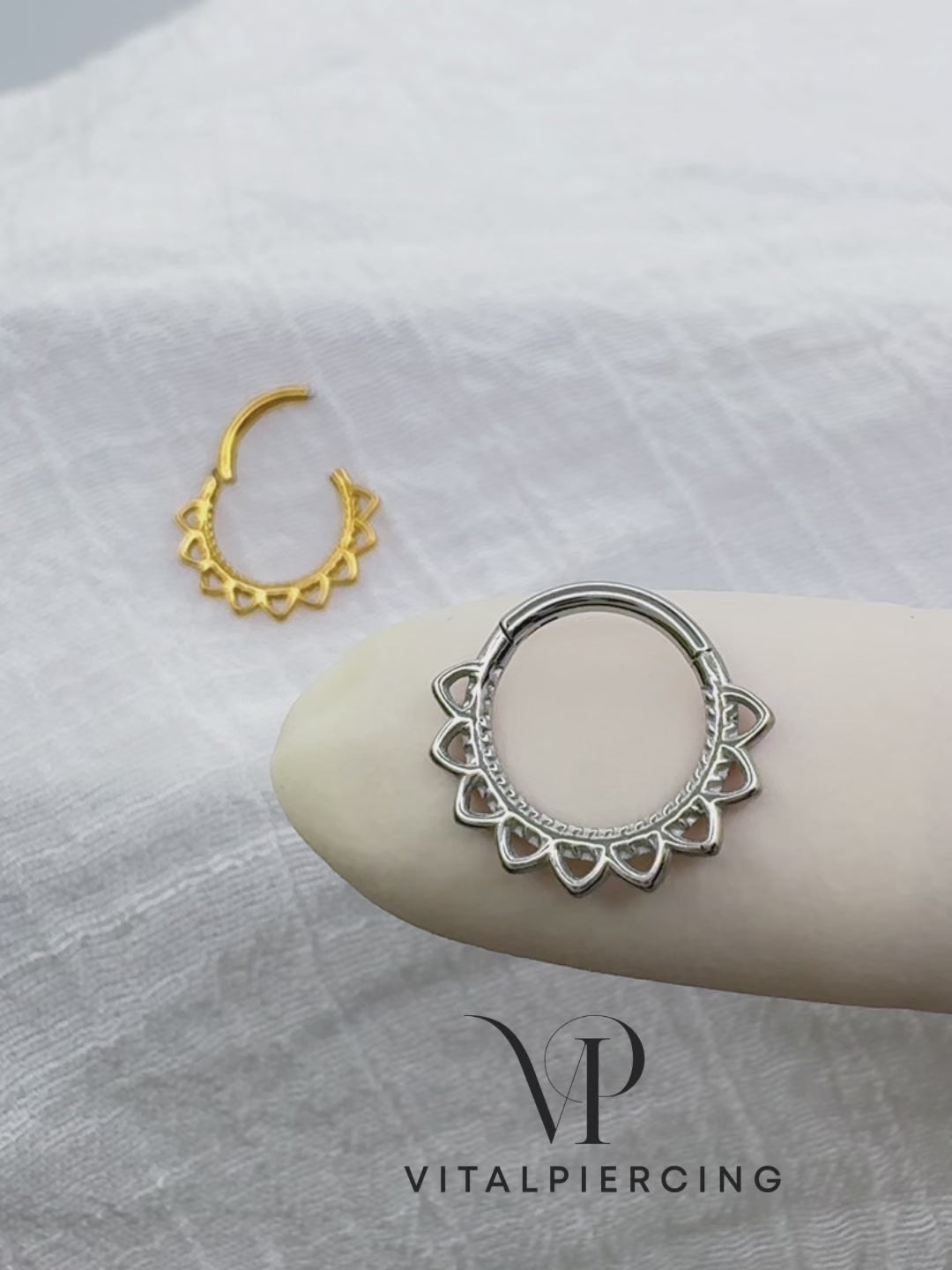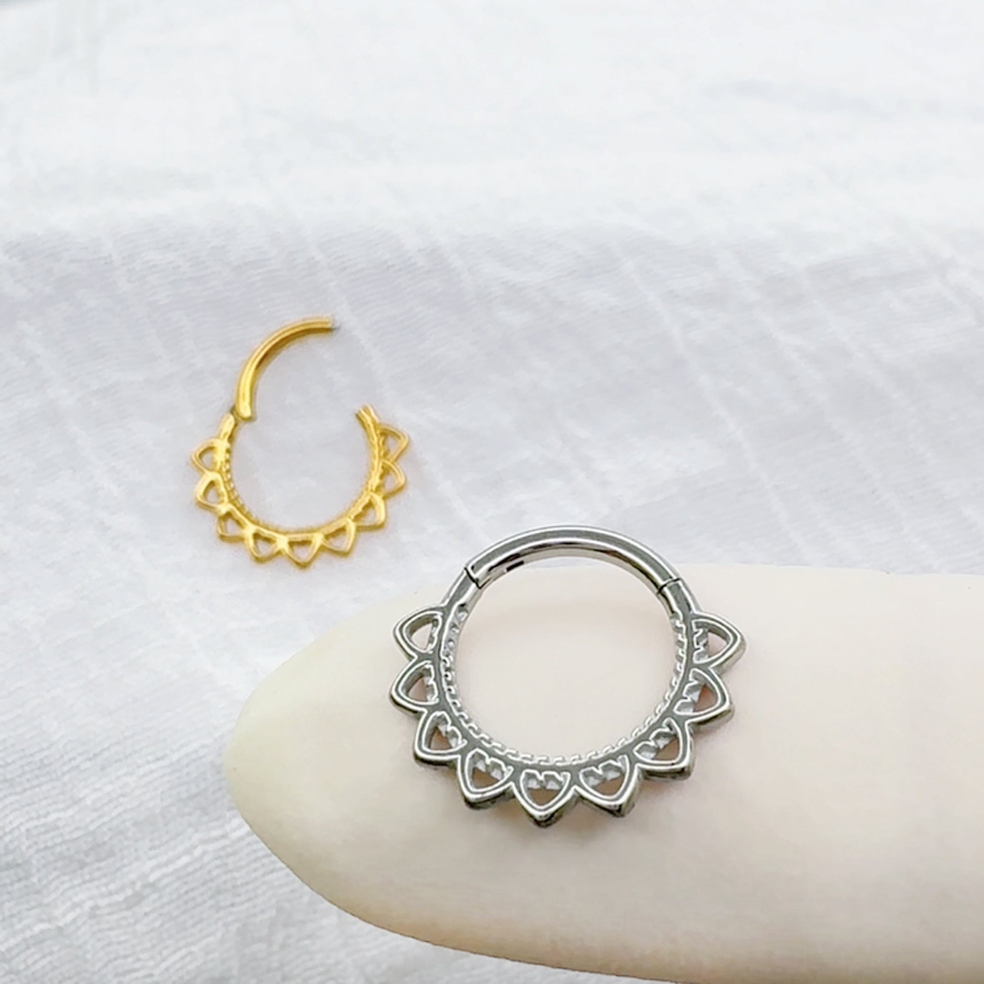 ✨ 316L Surgical Steel Heart Filigree Hinged Segment Hoop Clicker Ring 16G 8mm