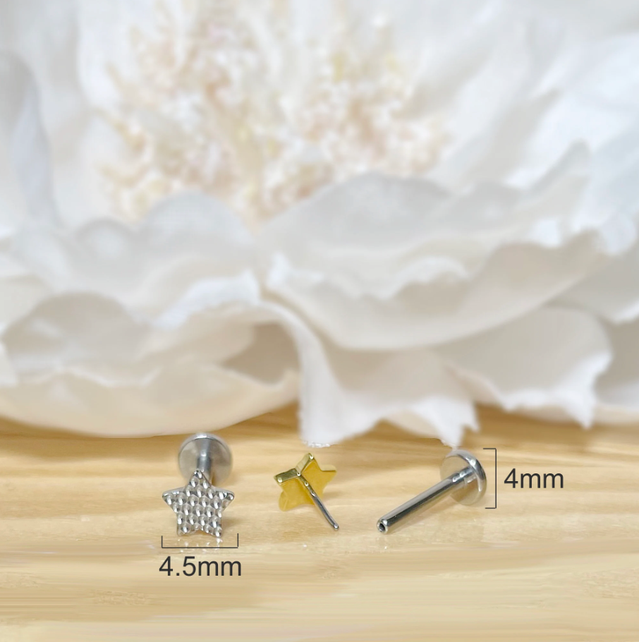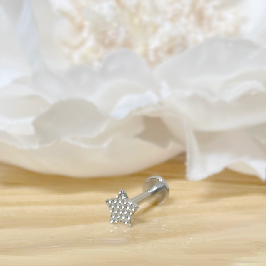 ✨ Titanium Threadless Push-In Star Top Labret Bar Stud