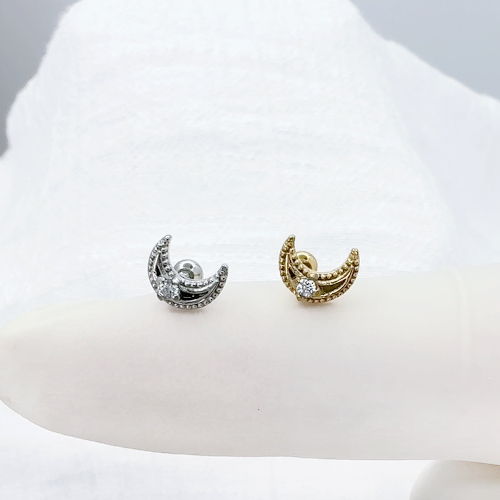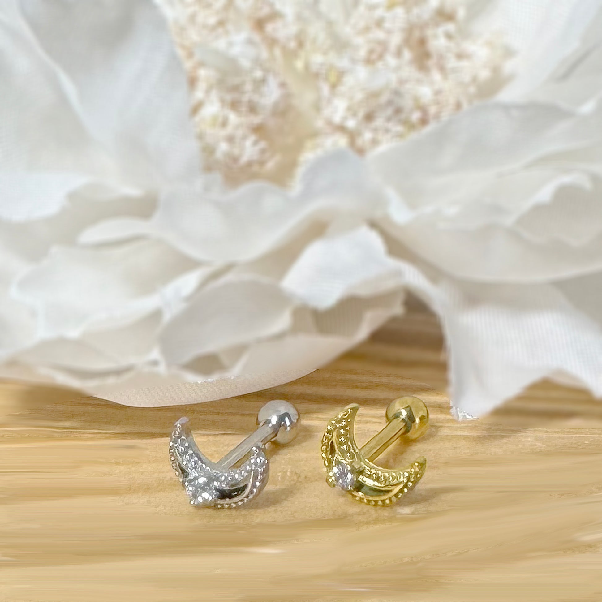 ✨ Surgical Steel Crescent Moon CZ Threaded Flat Back Labret 16G