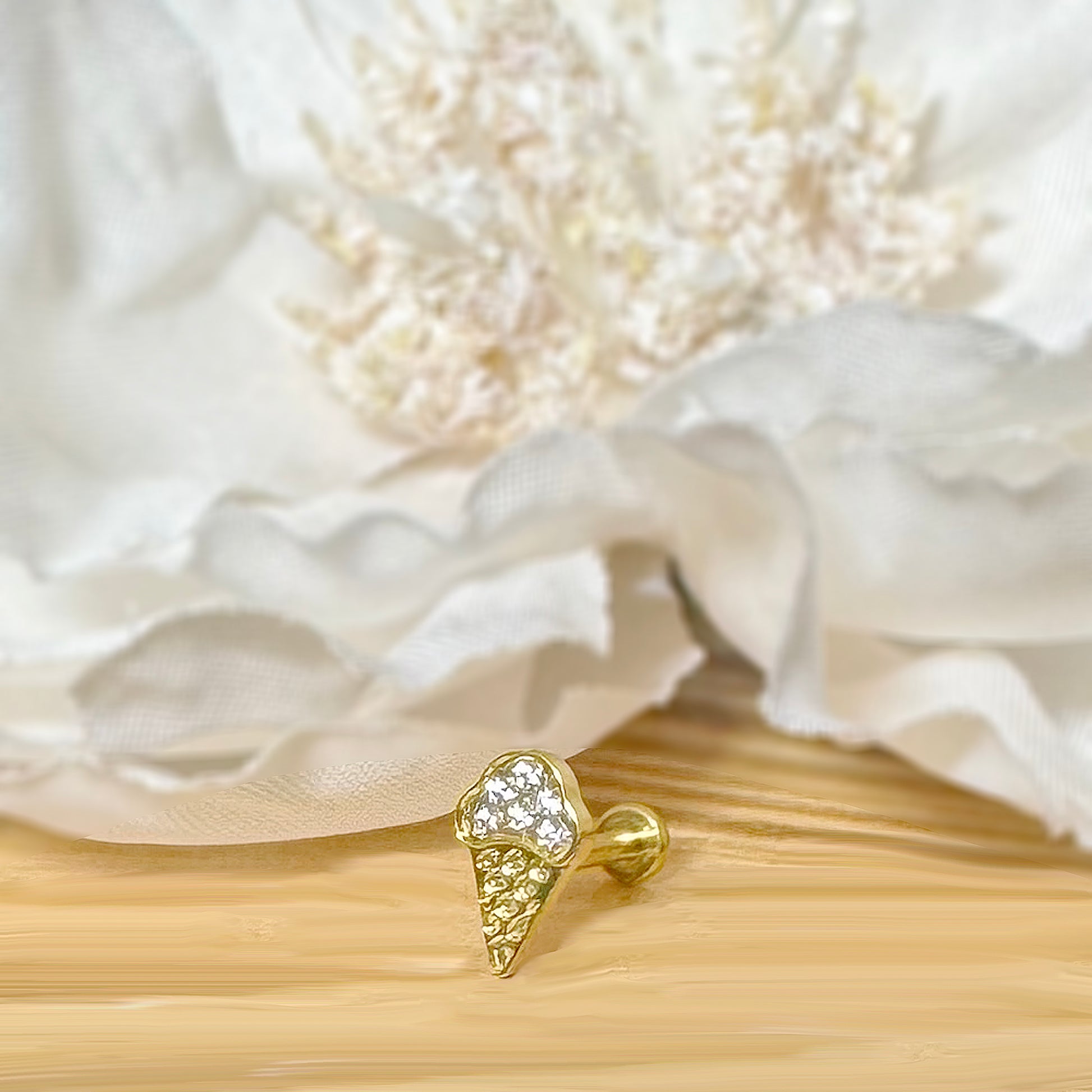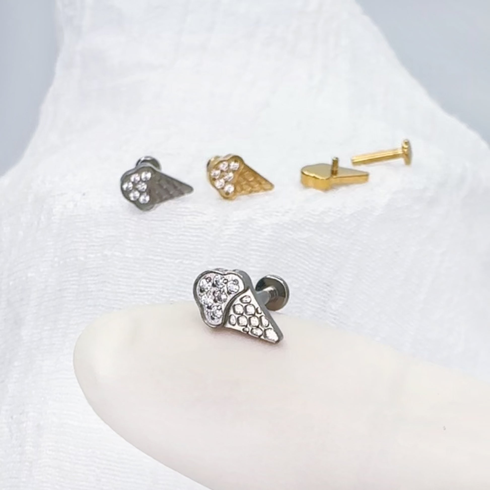 ✨ Titanium Ice Cream Cone CZ Top Internally Threaded Labret 16G