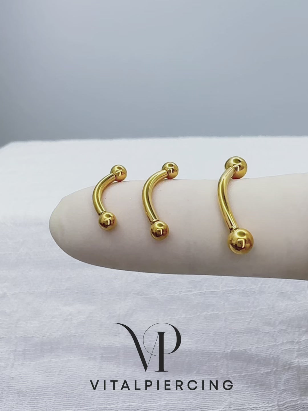 ✨ Gold Titanium Threadless Push In Curved Barbell with One Fixed Ball 16G 14G