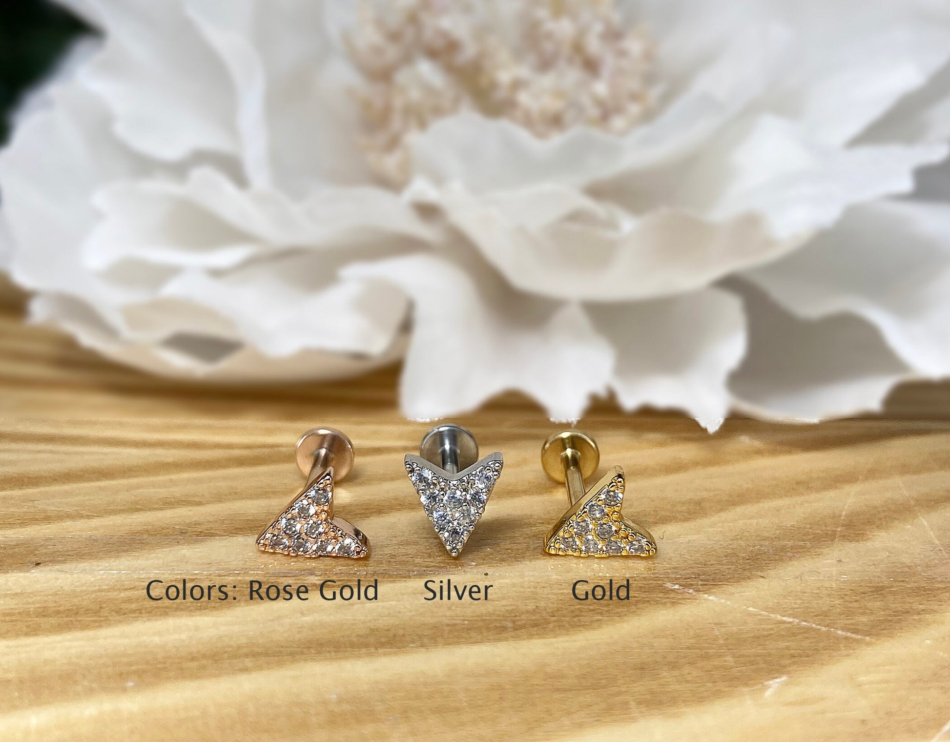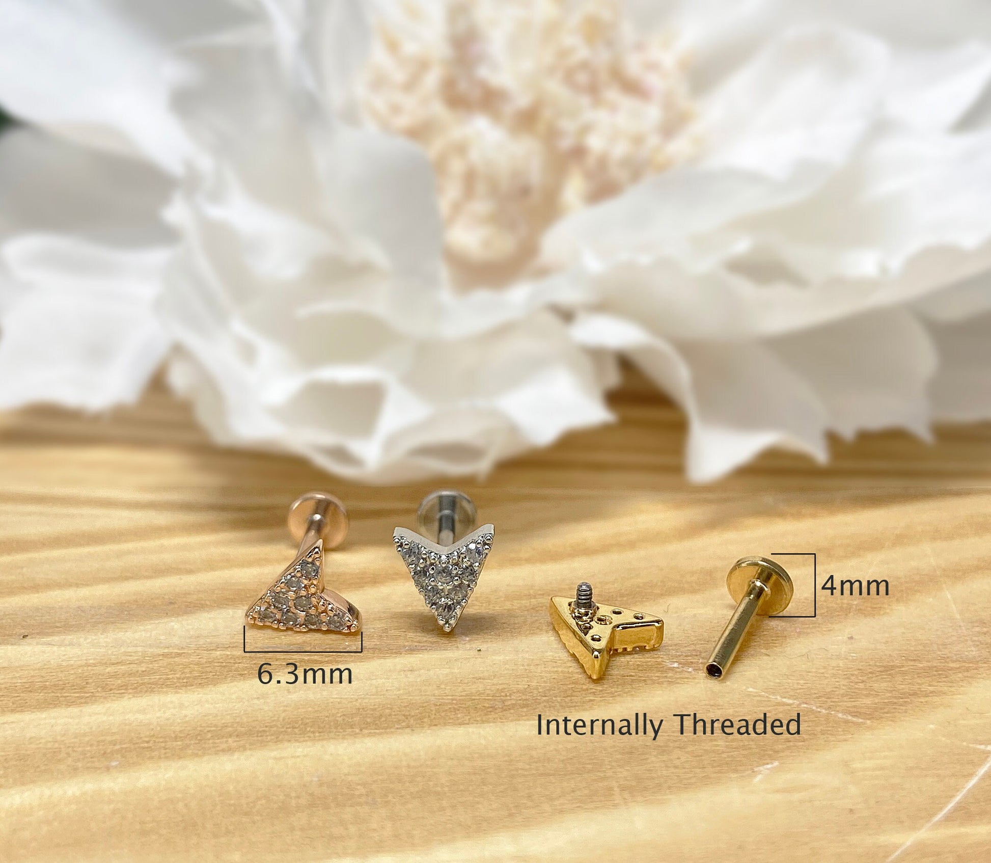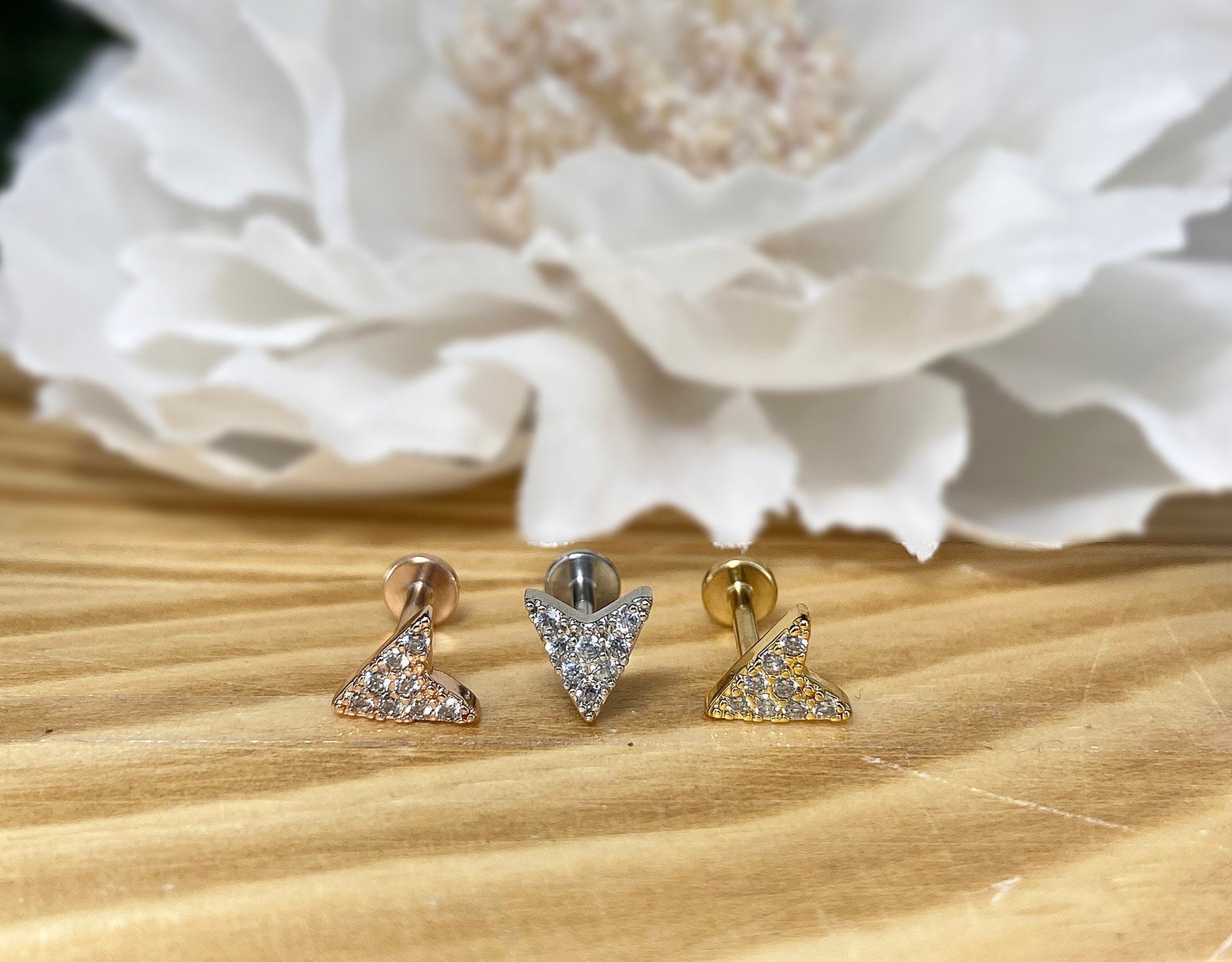 ✨ Surgical Steel Arrow CZ Internally Threaded Flat Back Labret 16G