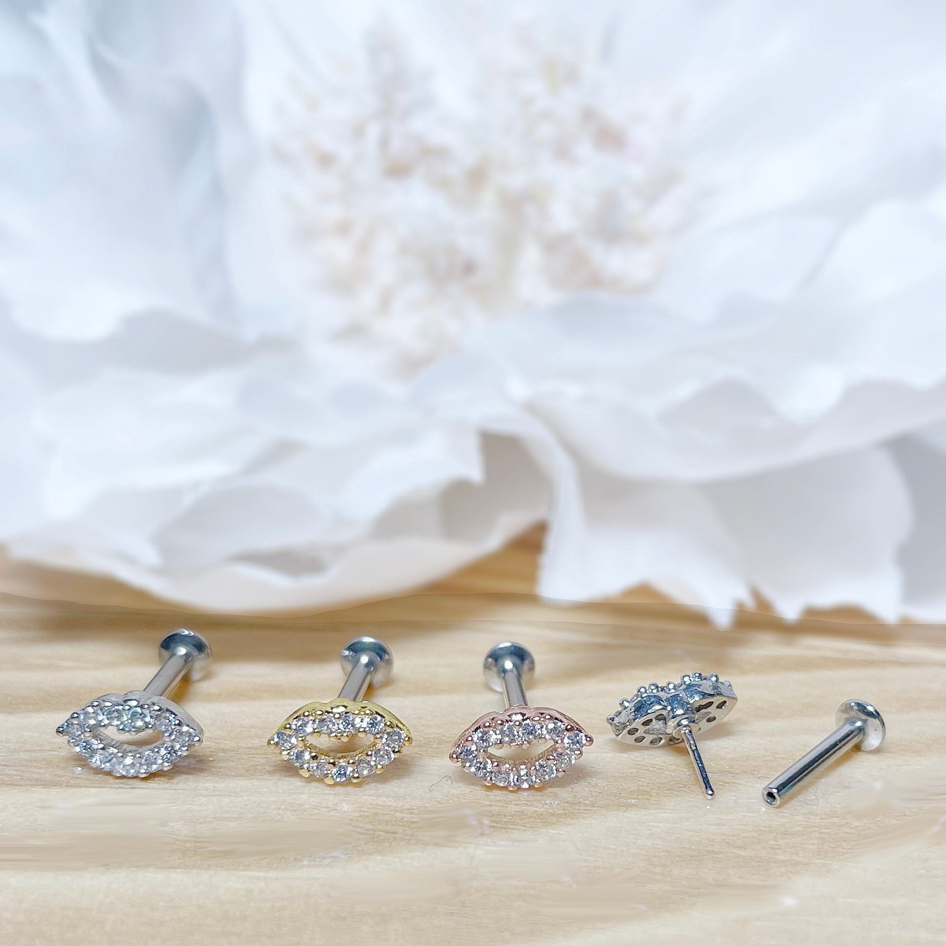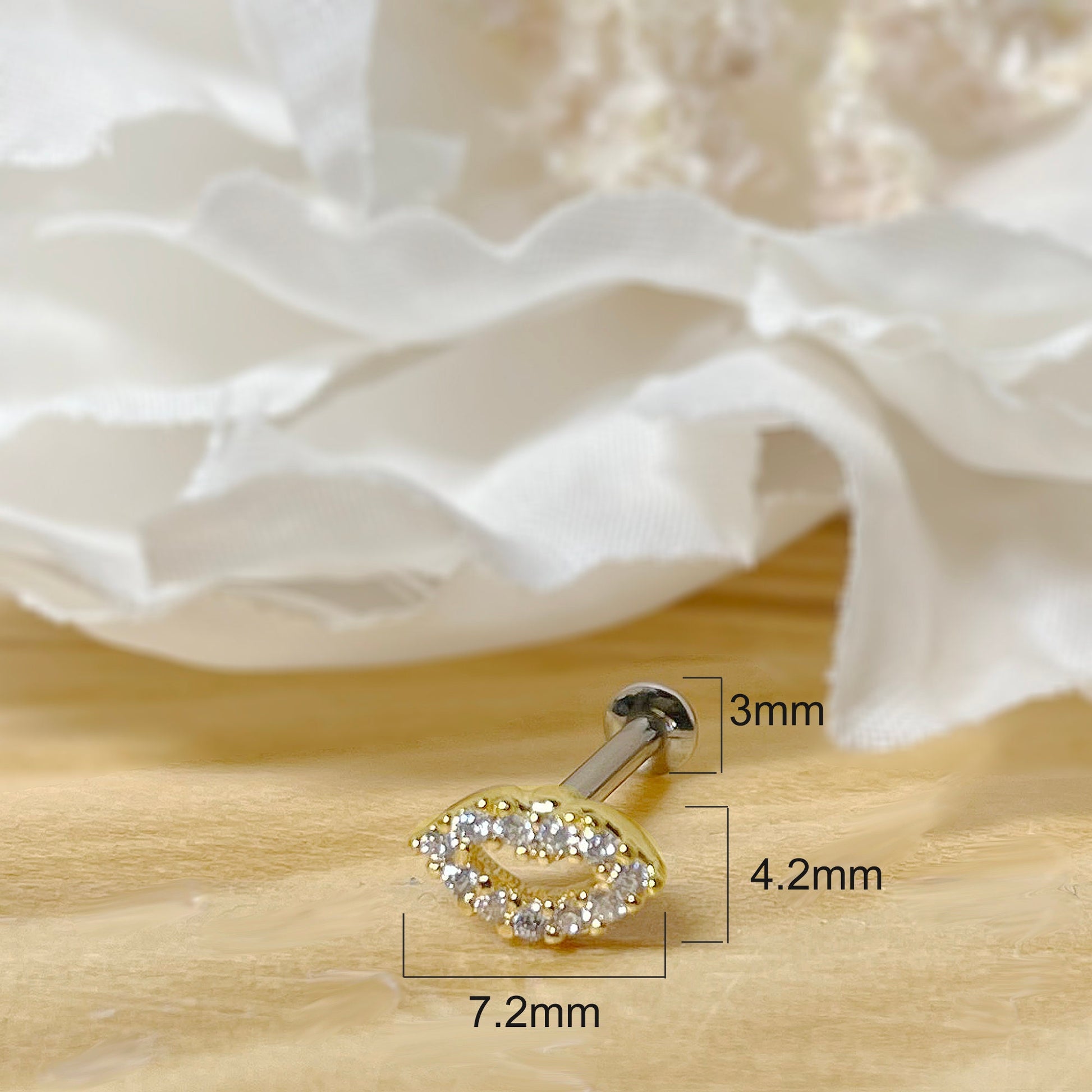 ✨ 16G Surgical Steel Lips CZ Top Threadless Labret Bar