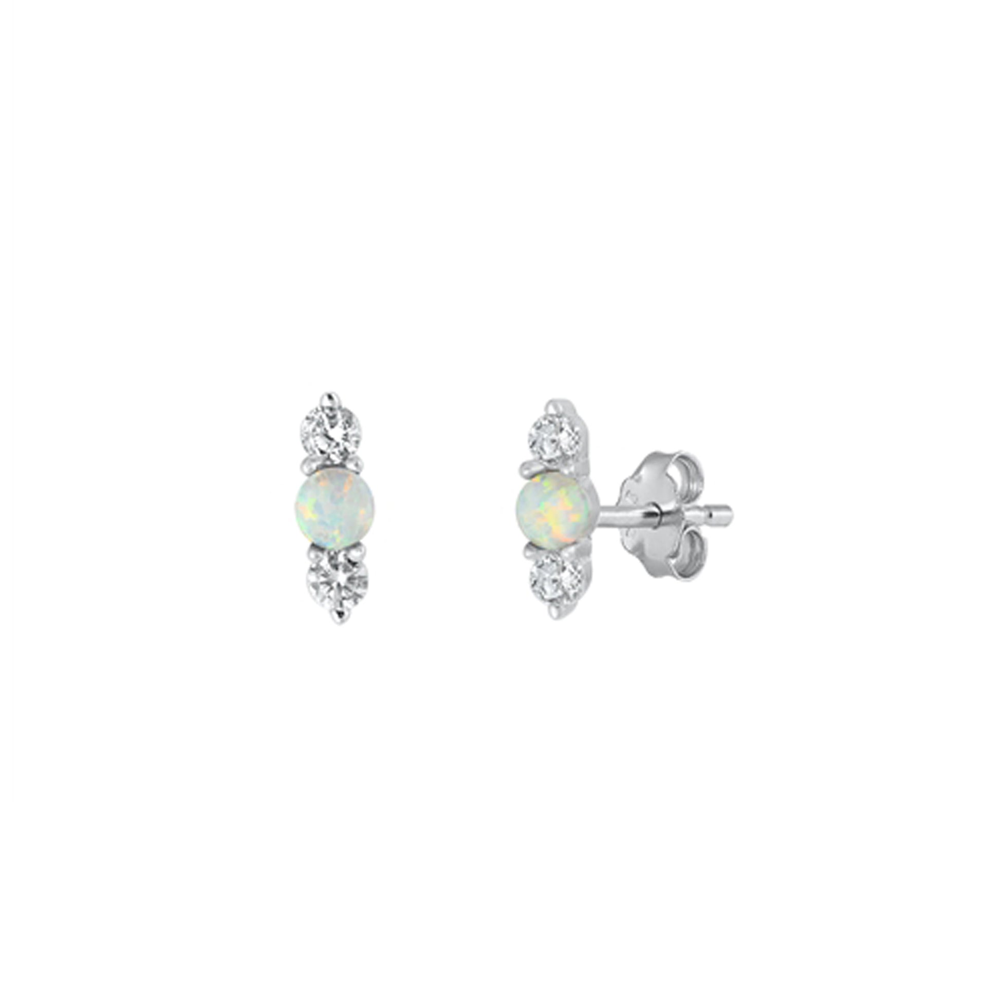 ✨ 925 Silver Dainty Opal and CZ Stud Earrings
