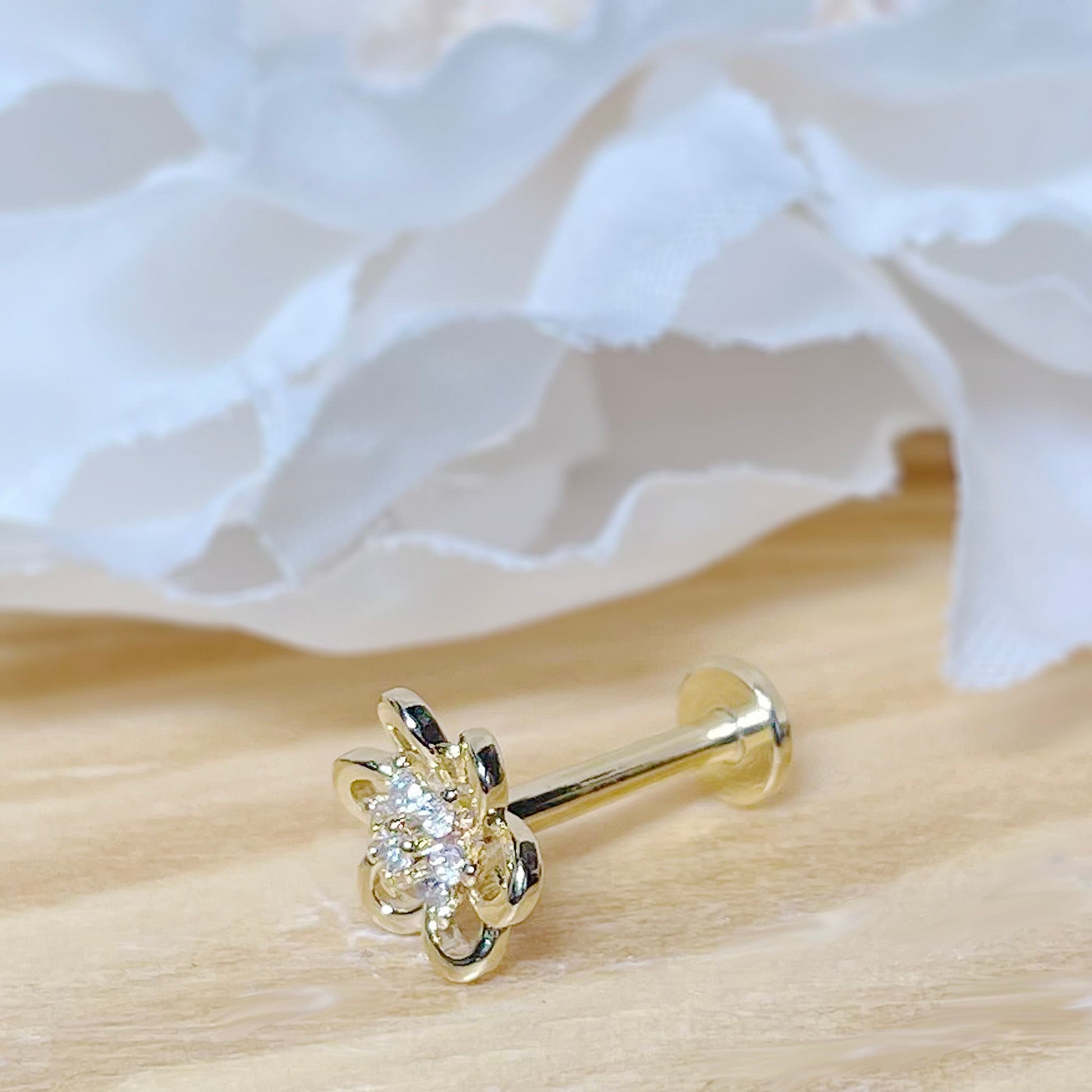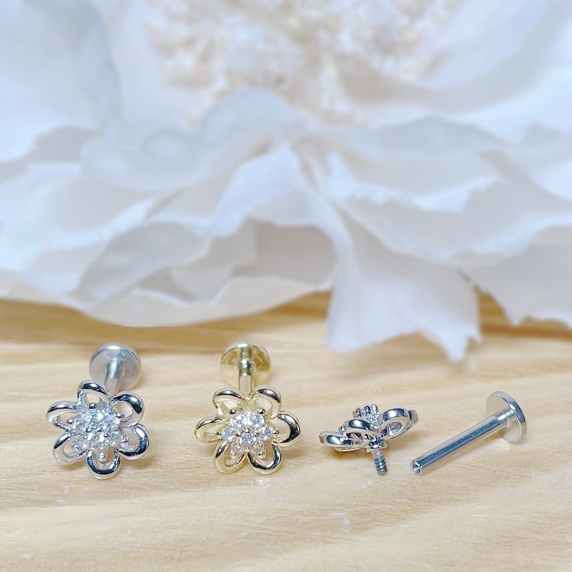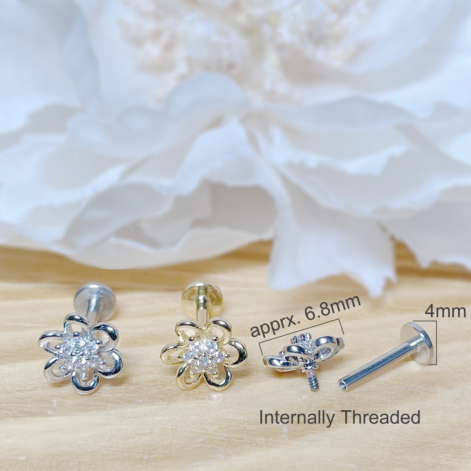 ✨ Surgical Steel Flower CZ Internally Threaded Flat Back Labret 16G