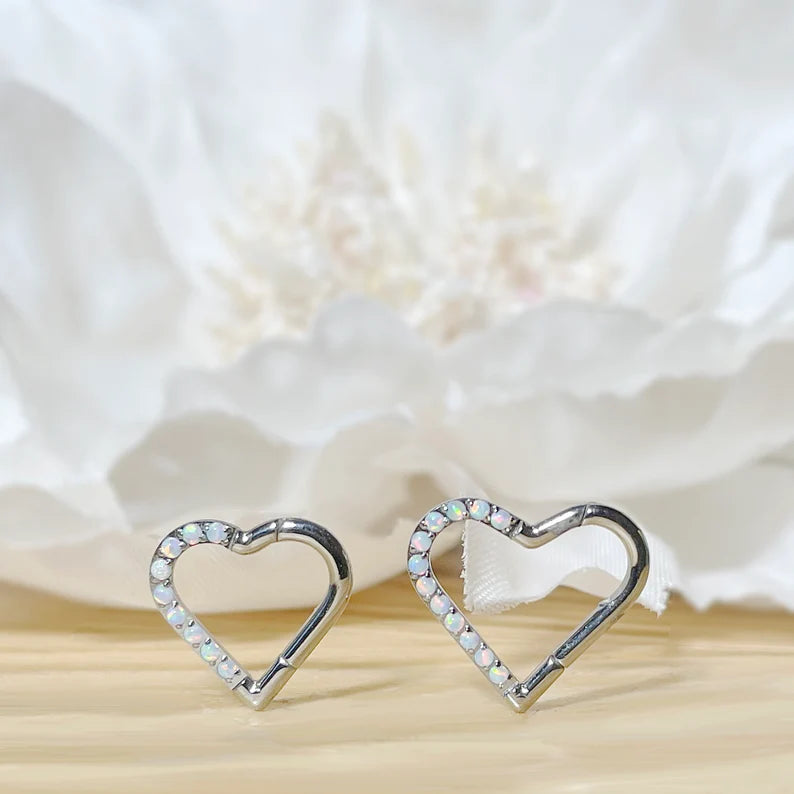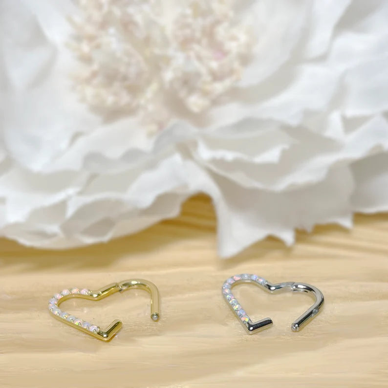✨ Titanium Heart with White Opal Hinged Segment Hoop Ring