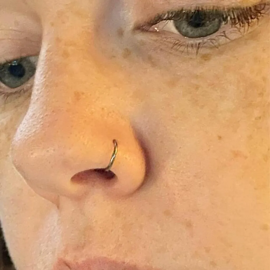 The everyday essential. A sleek, minimalist titanium hinged hoop with a smooth polished finish and secure click-shut closure. Made from implant-grade ASTM F-136 titanium — lightweight, nickel-free, and safe for sensitive skin and healing piercings.
