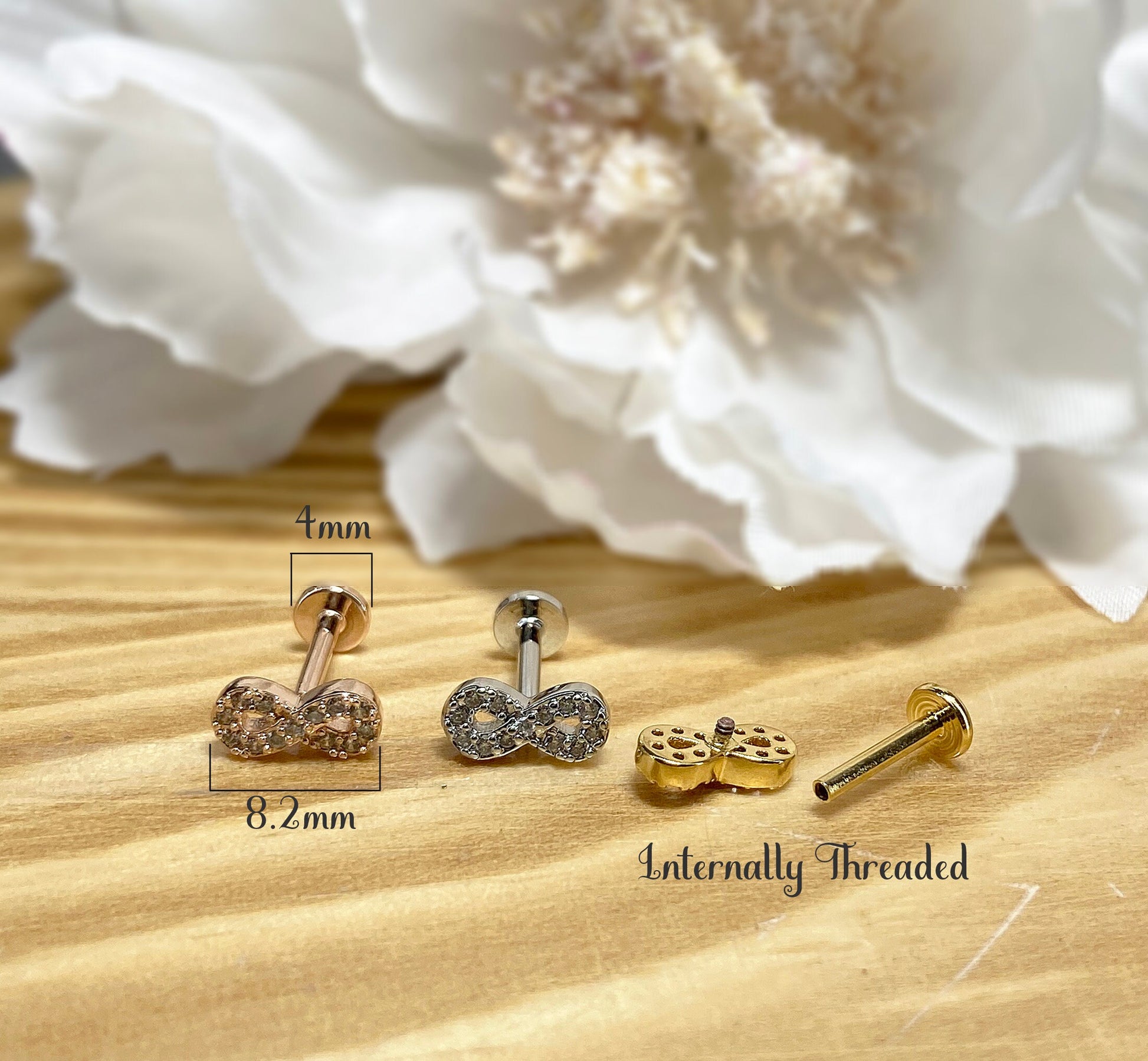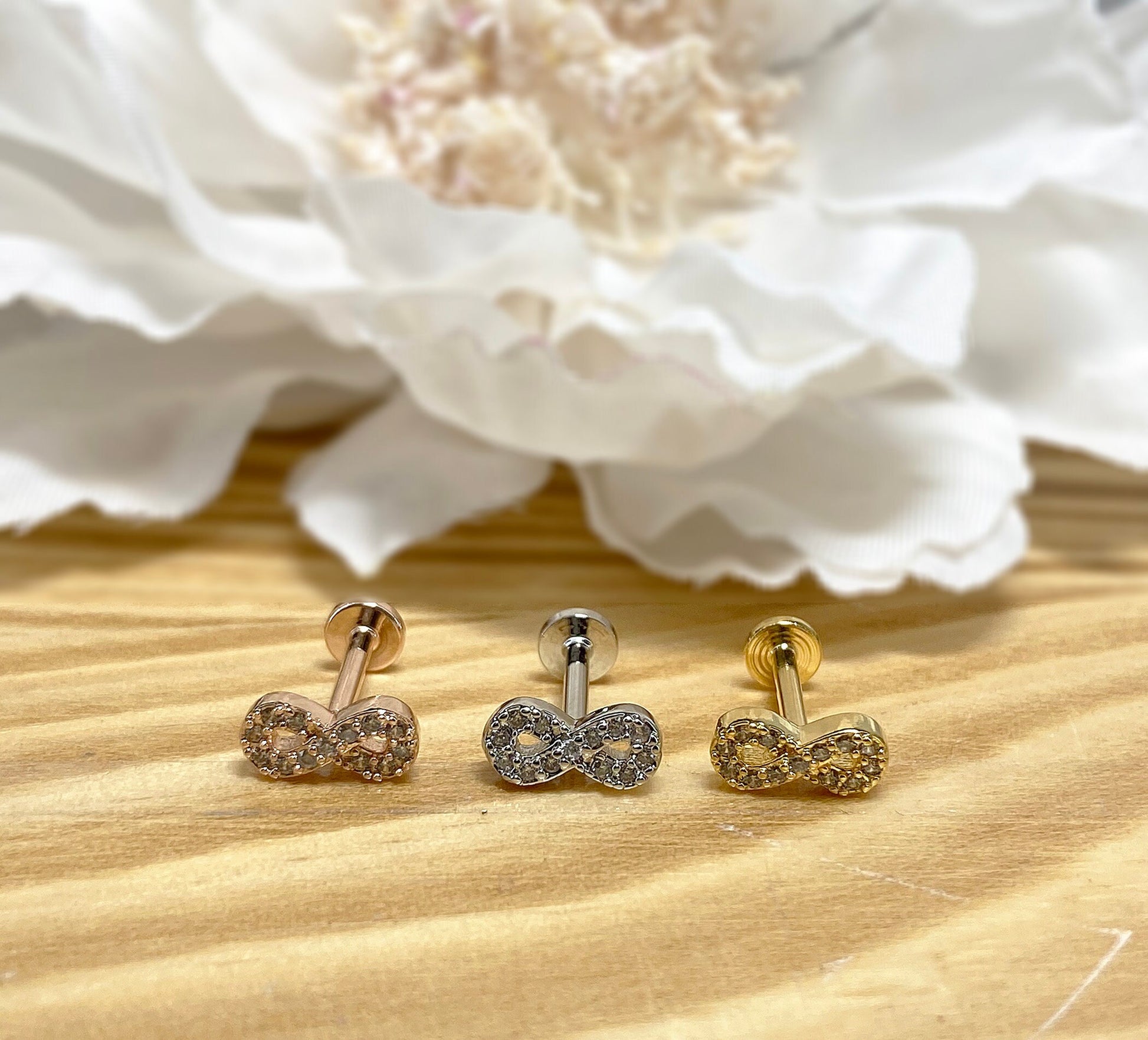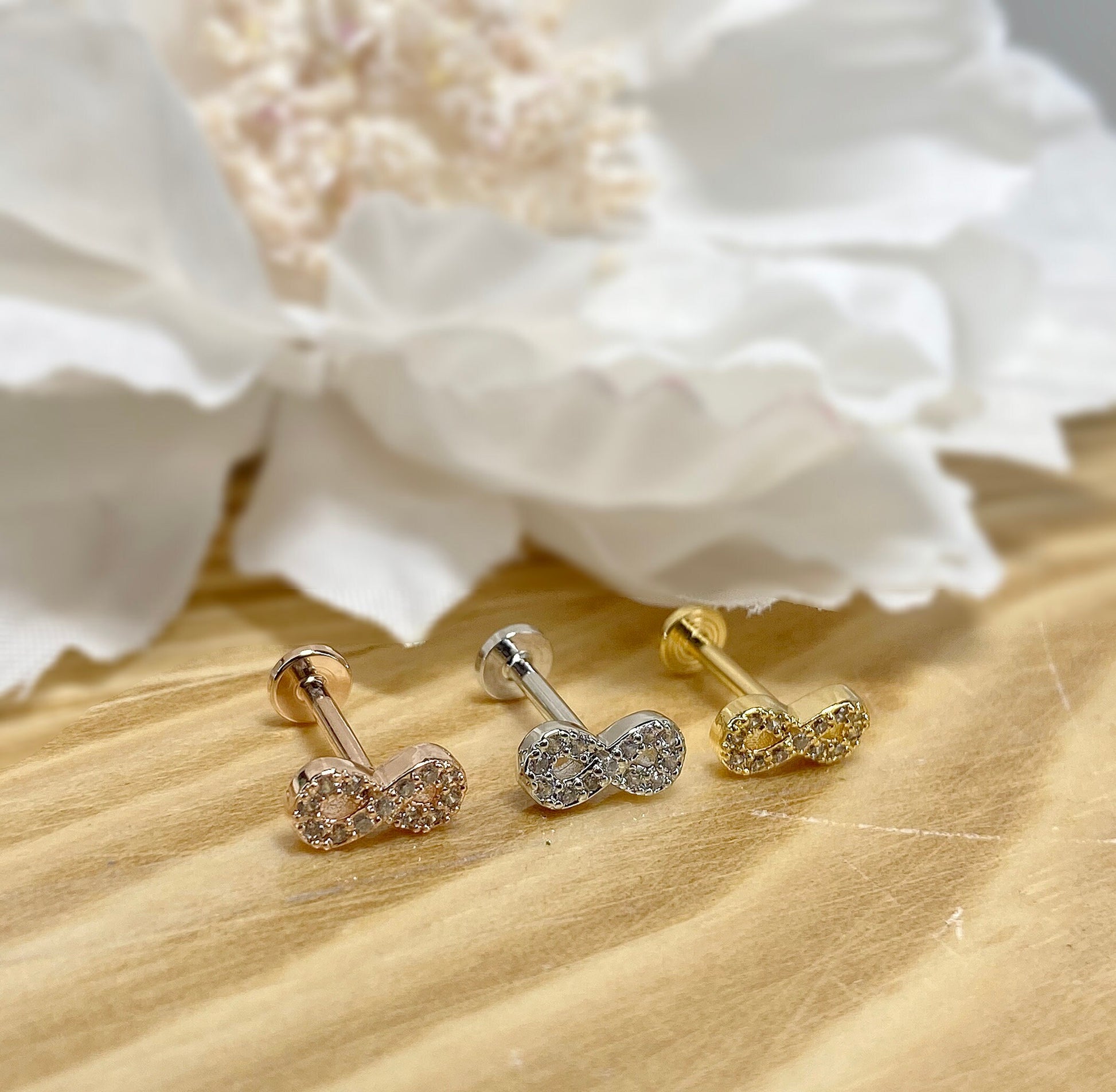 ✨ Infinity Symbol CZ Top Internally Threaded Flat Back Labret 16G