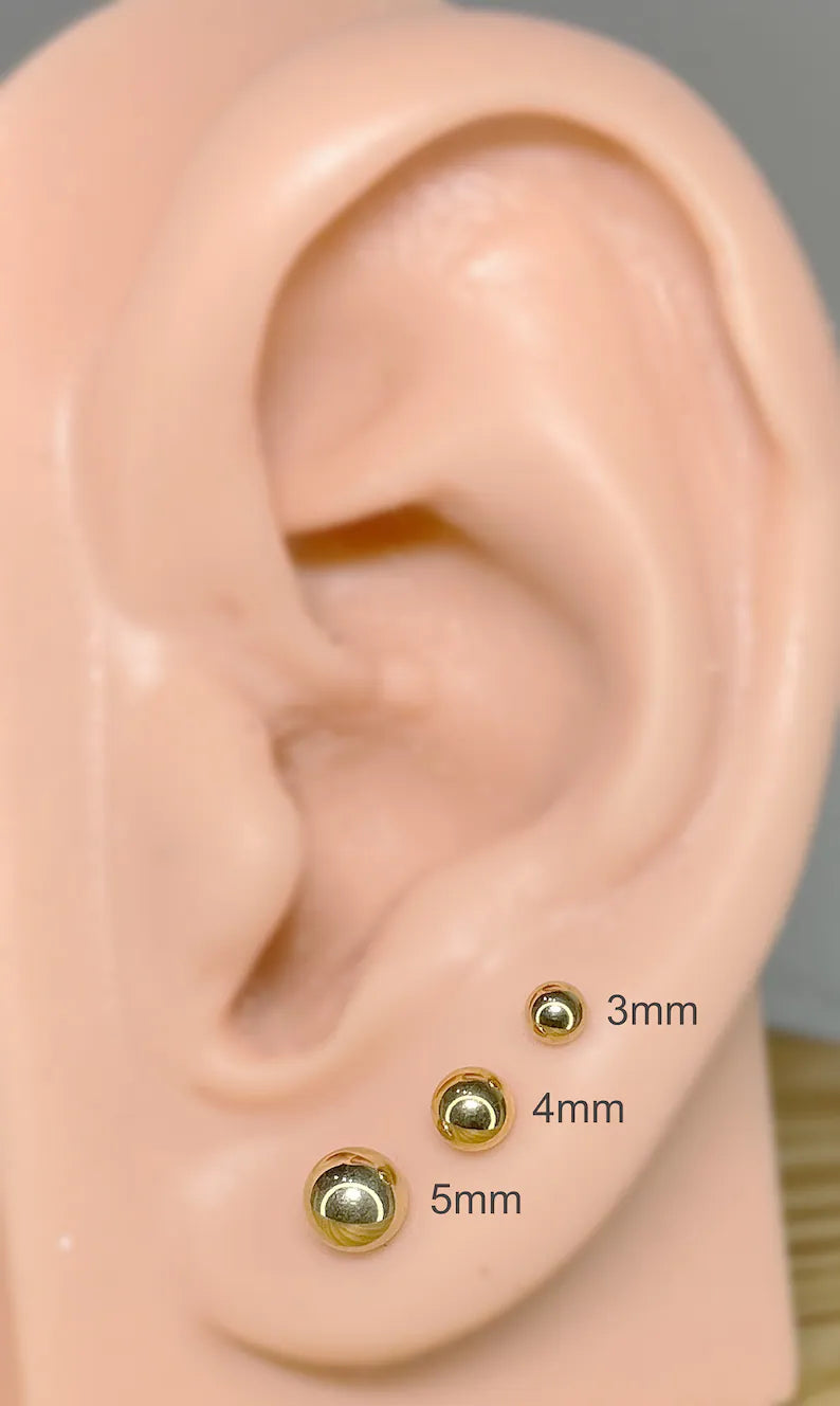 ✨ Gold Titanium Round Ball Stud Earrings