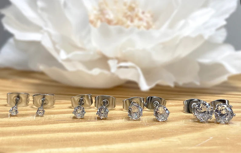 ✨ Surgical Steel Clear Round CZ Stud Earrings