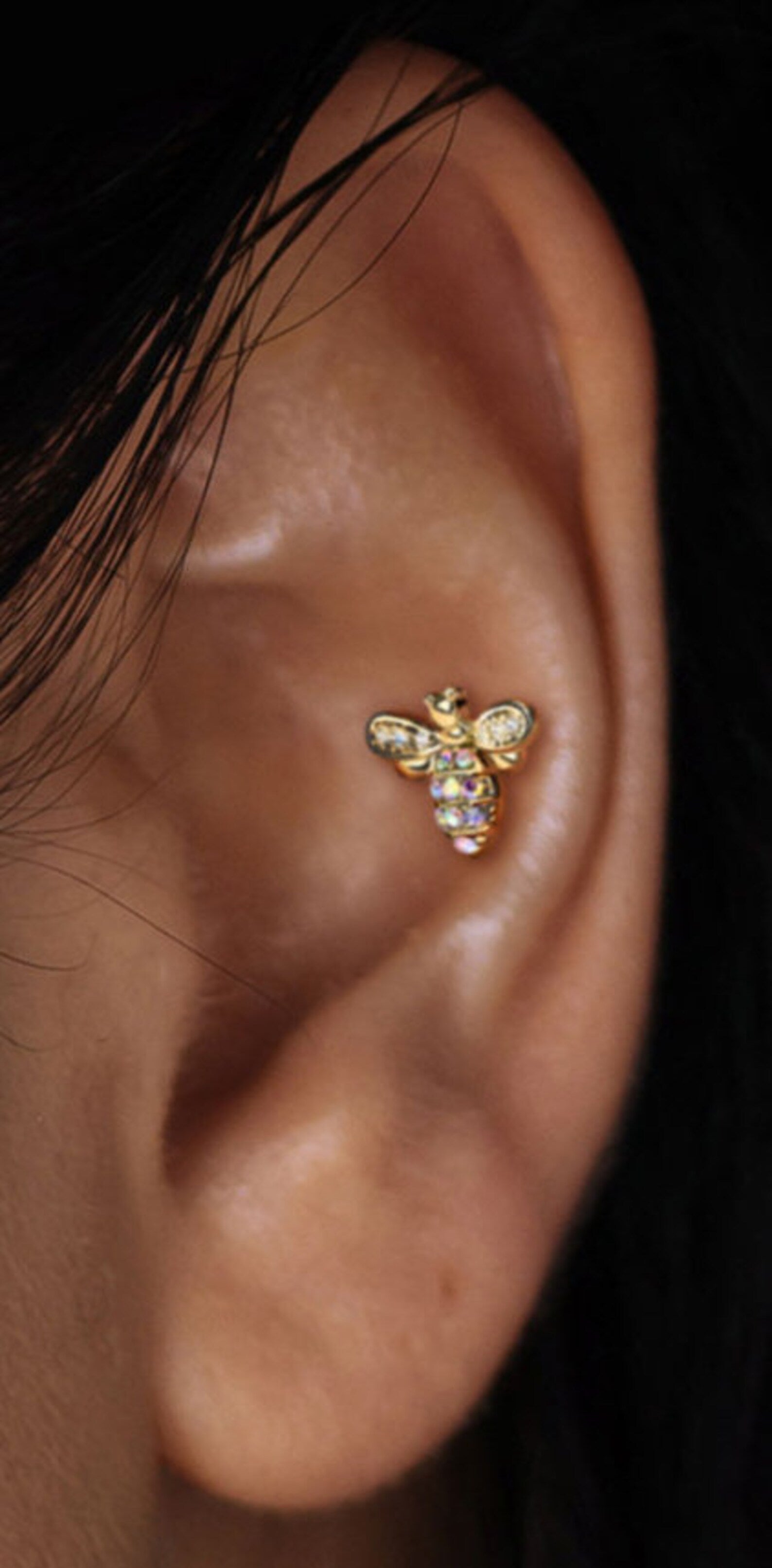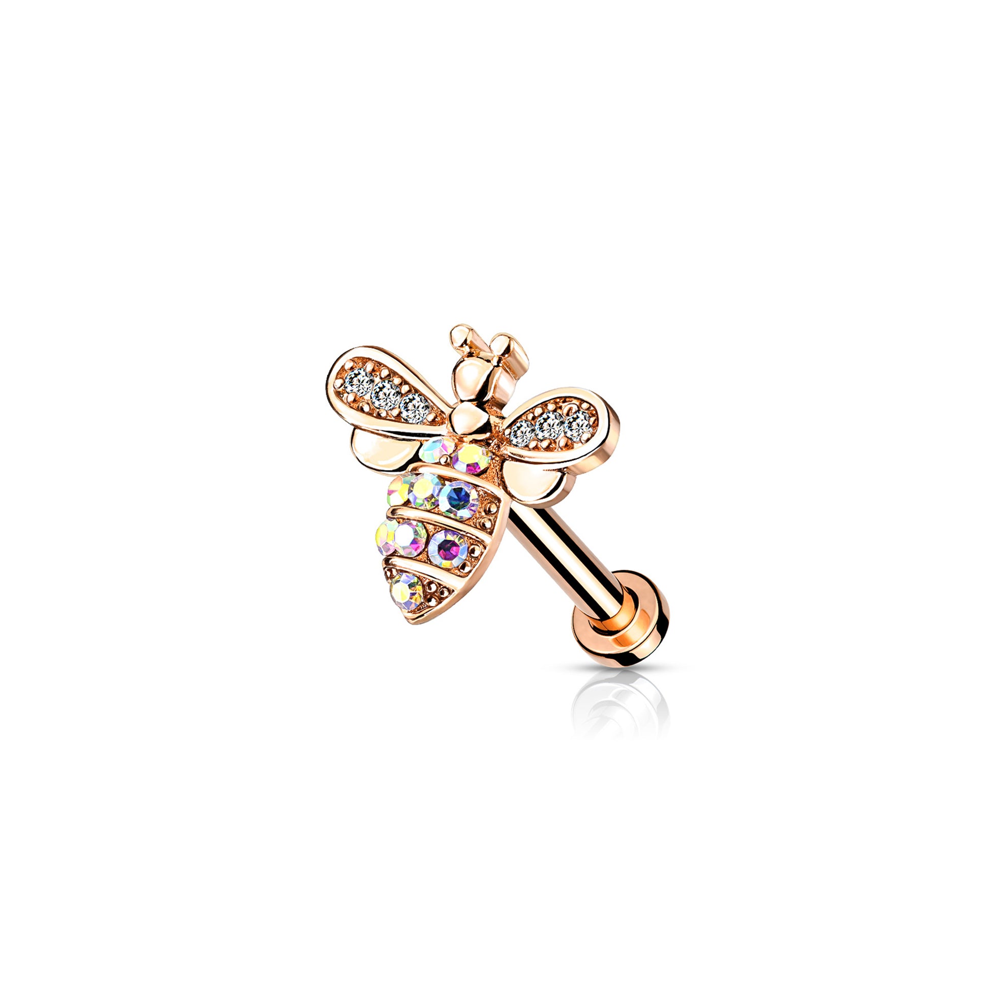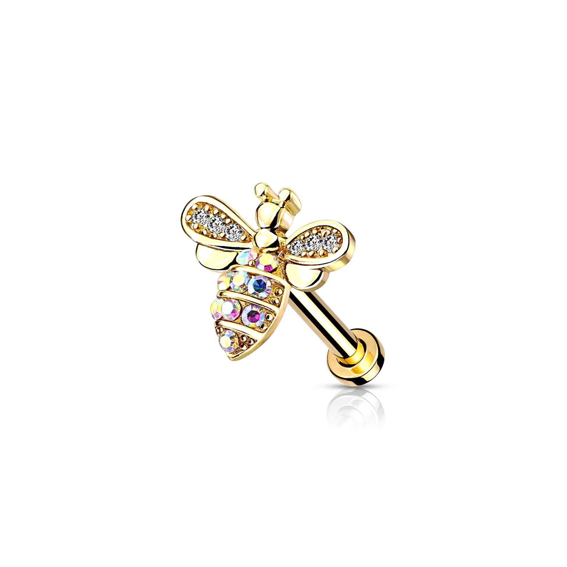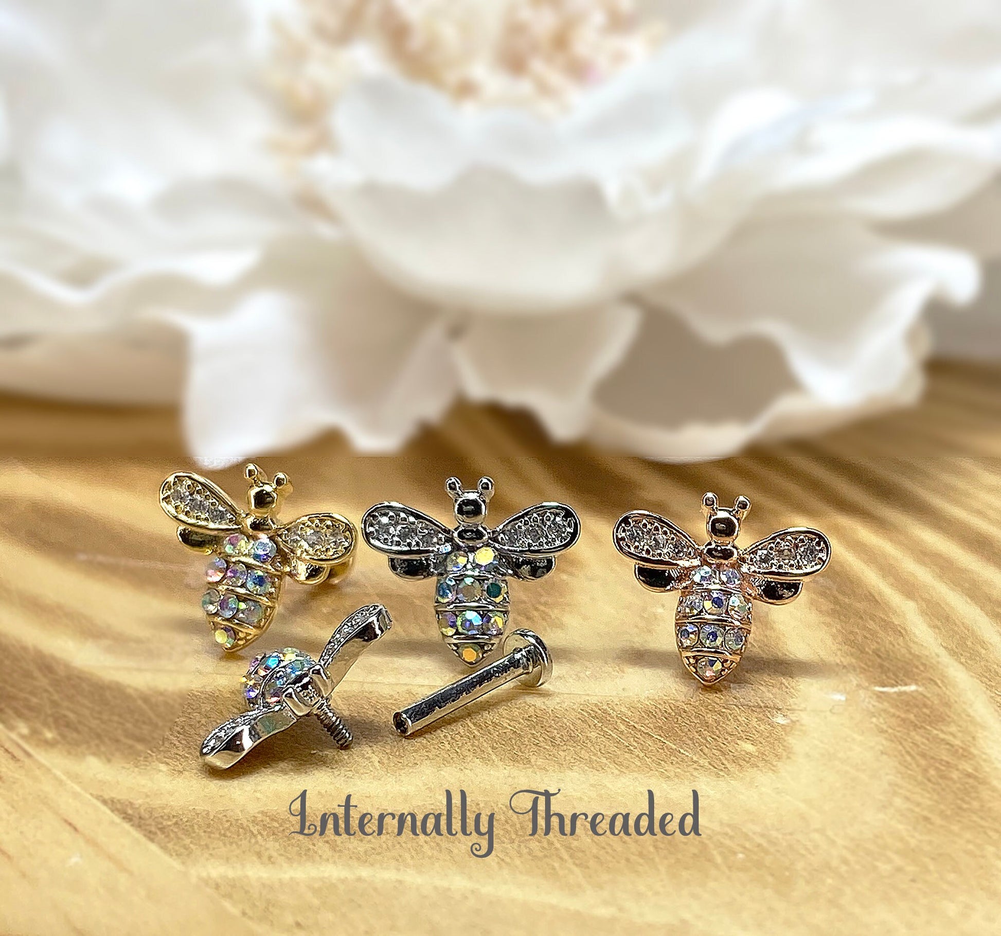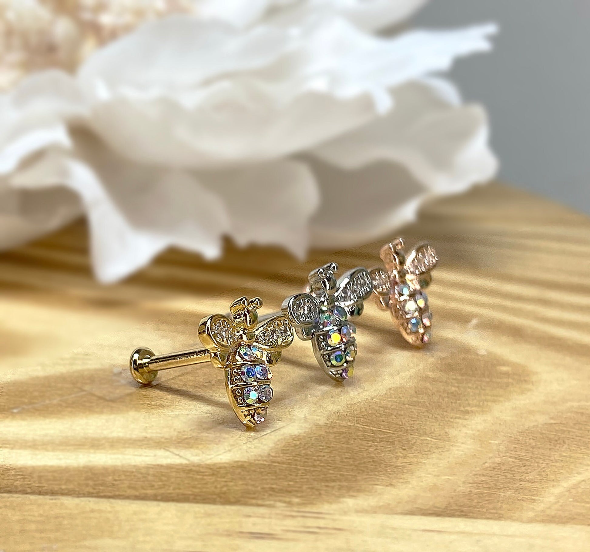 ✨ Surgical Steel CZ Bee Top Internal Threaded Flat Back Labret 16G