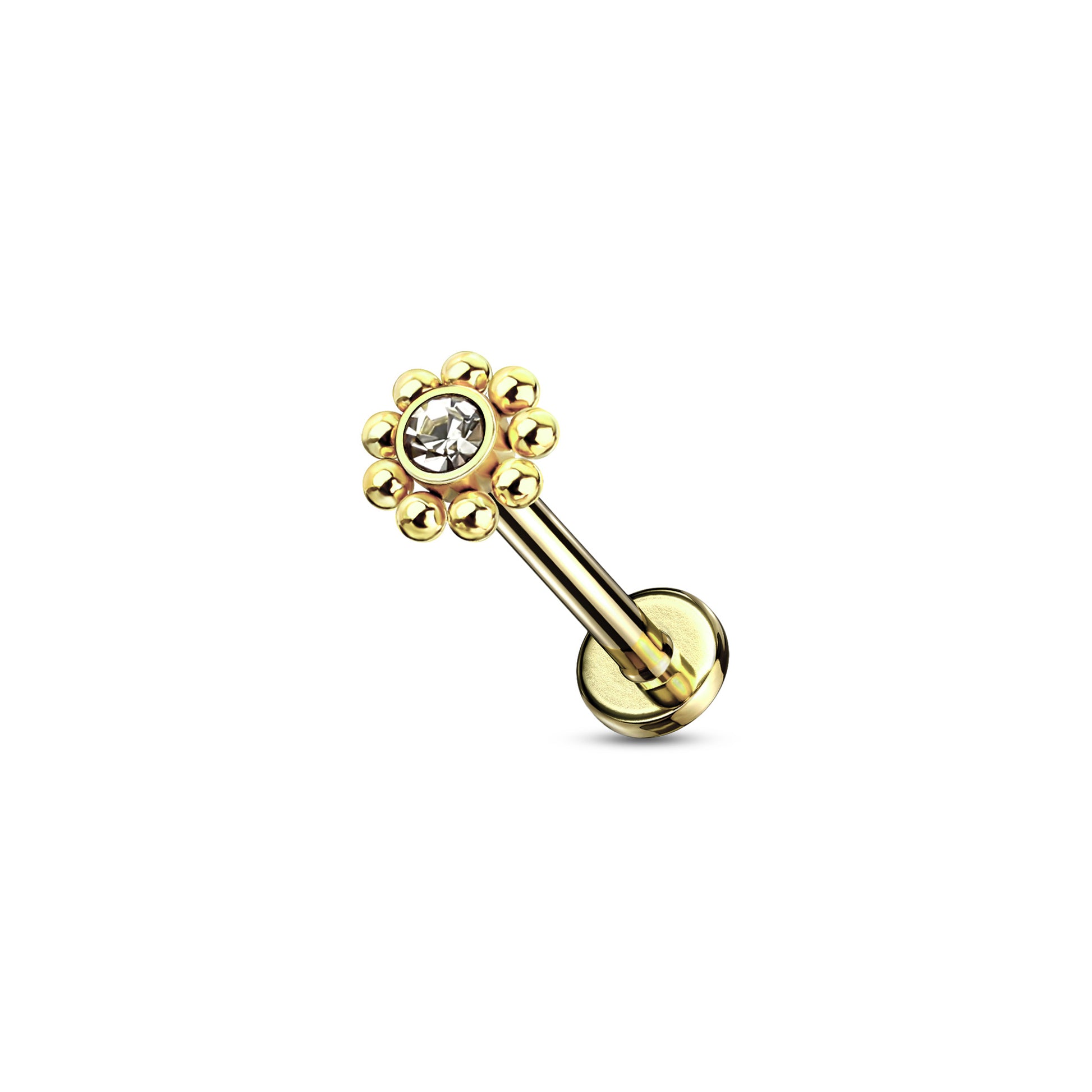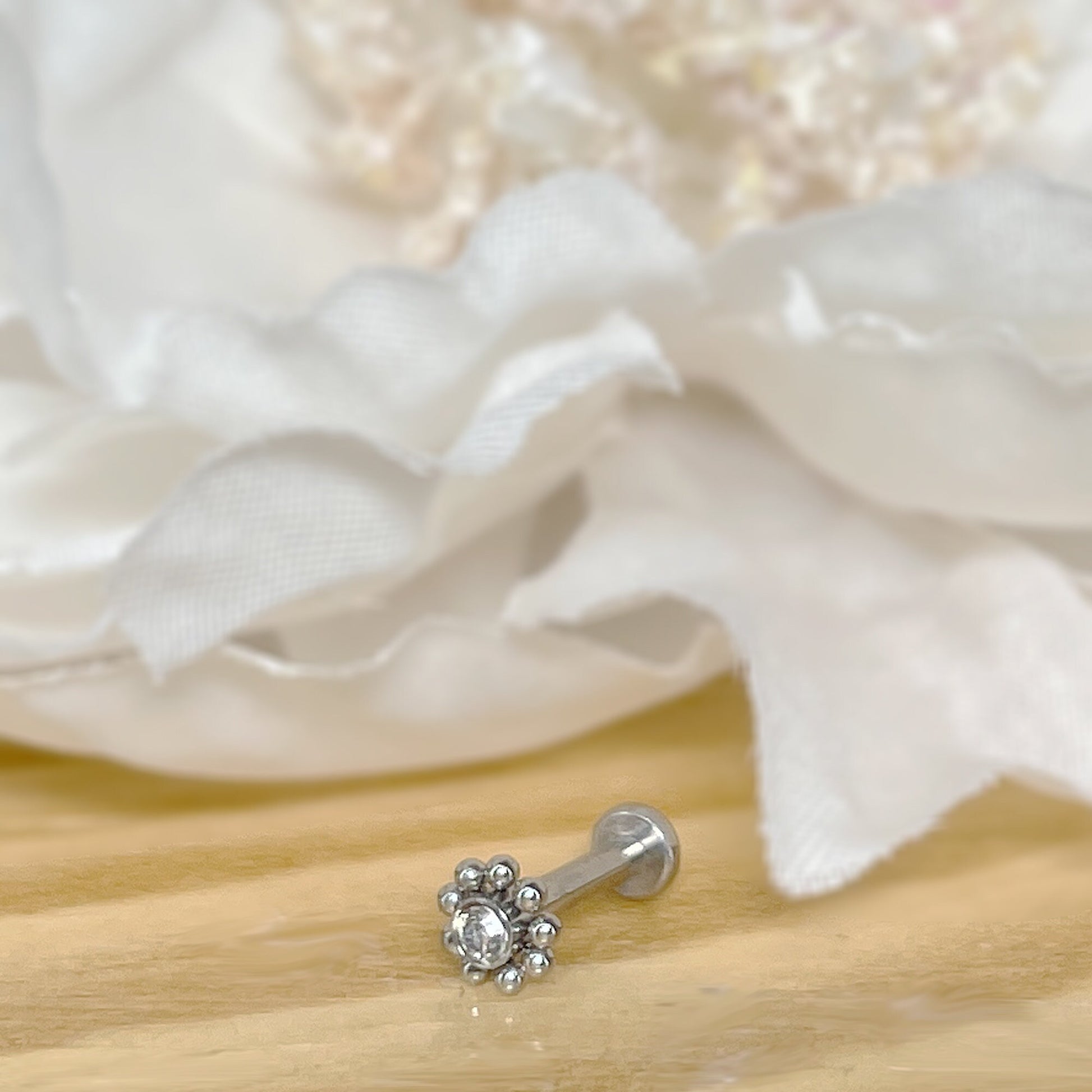 ✨ Surgical Steel CZ Internal Threaded Flat Back Labret 16G