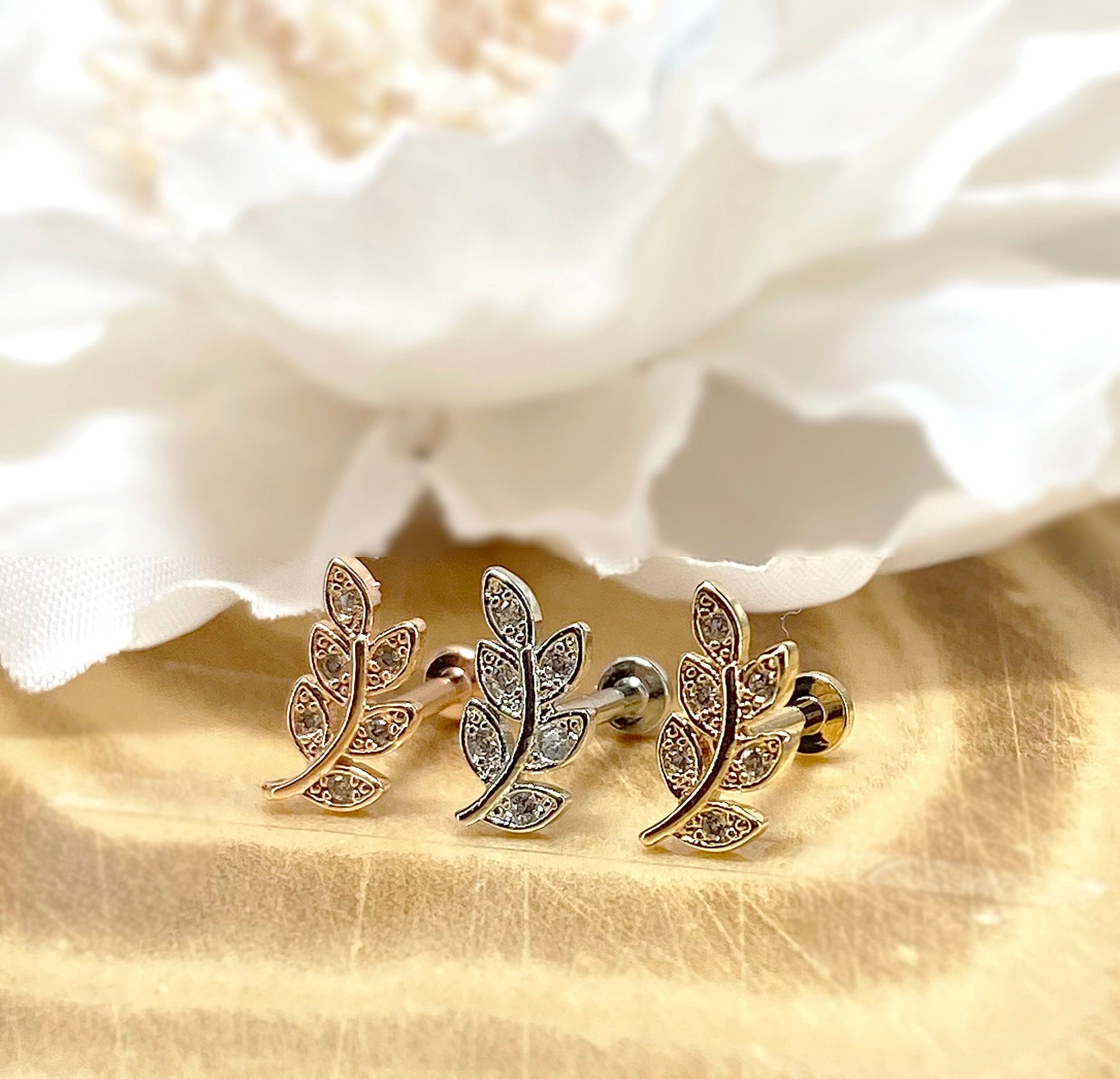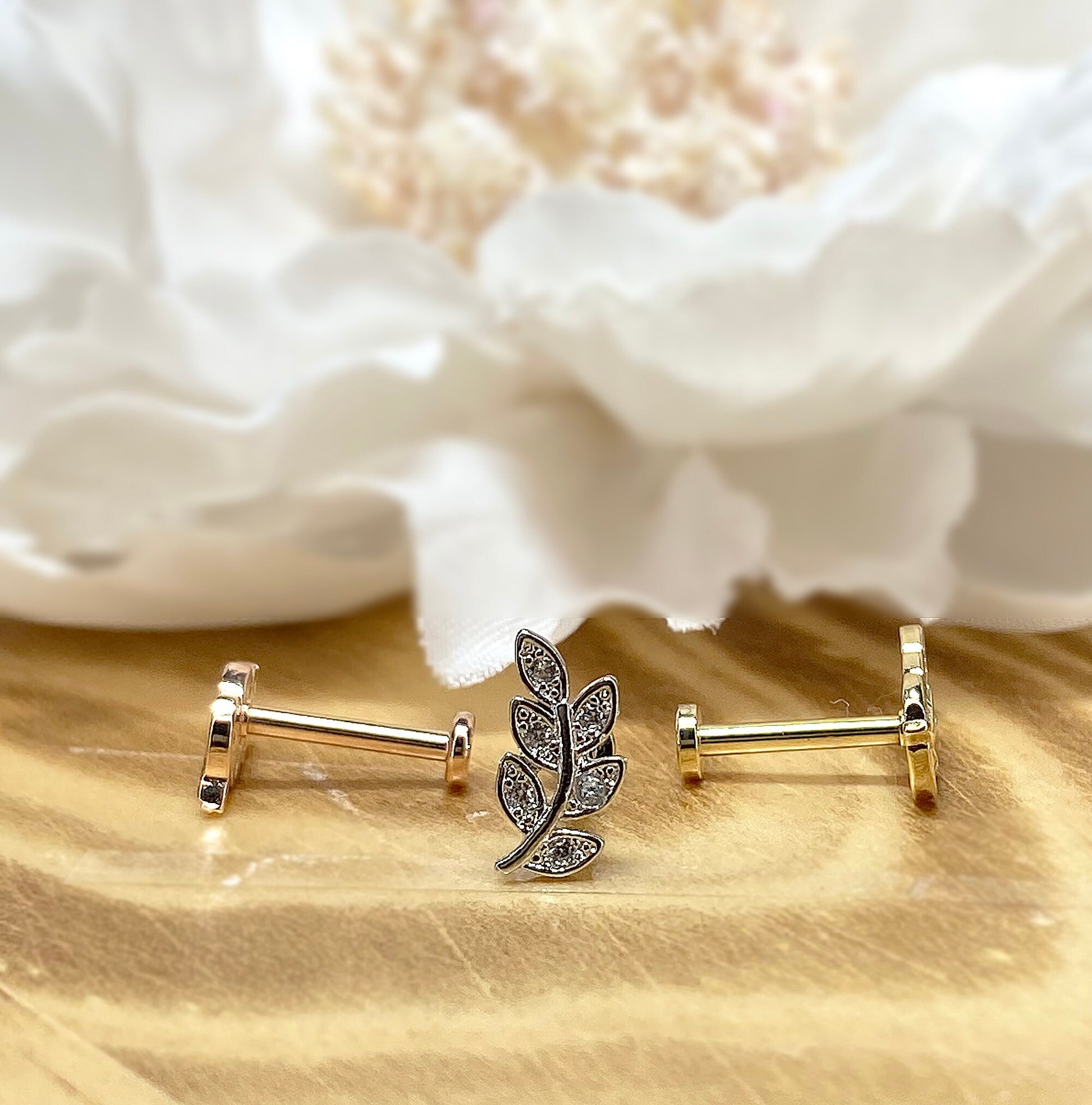 ✨ Surgical Steel Leaf CZ Internal Threaded Flat Back Labret