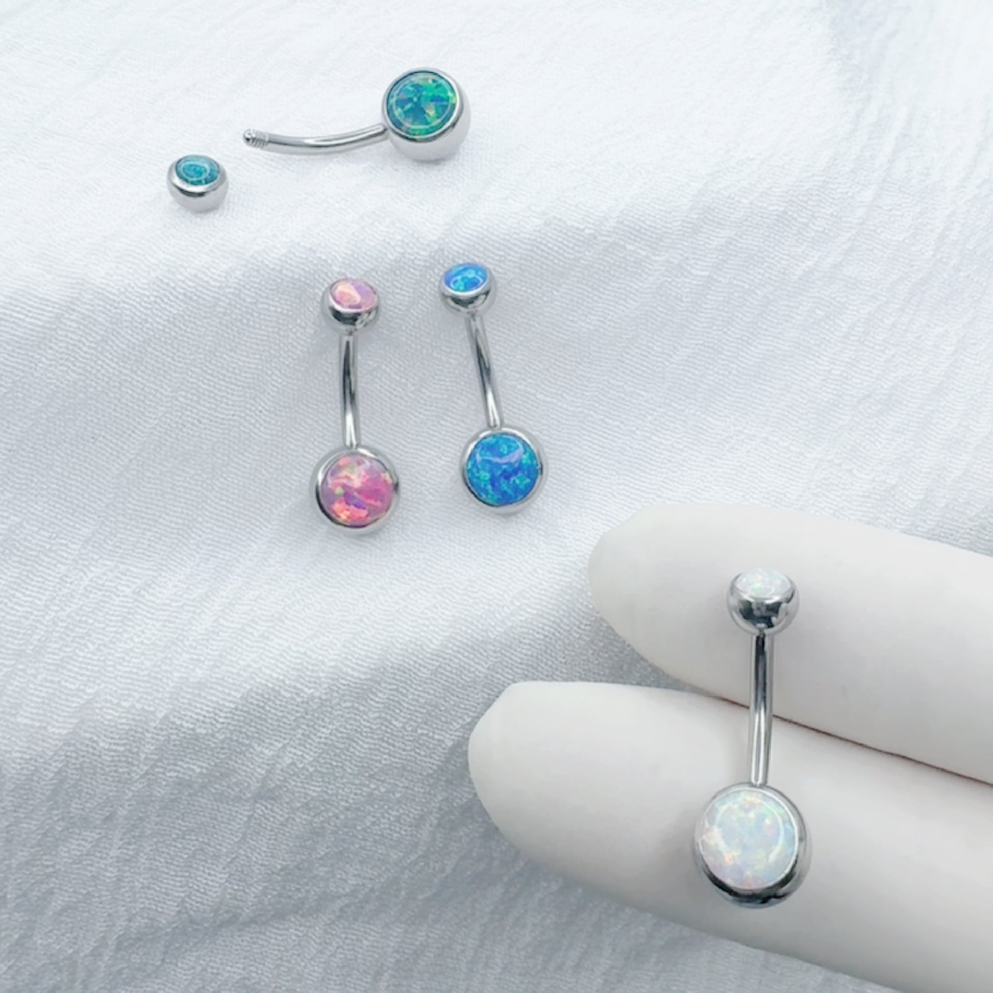 ✨ Surgical Steel Opal Set Belly Button Navel Ring