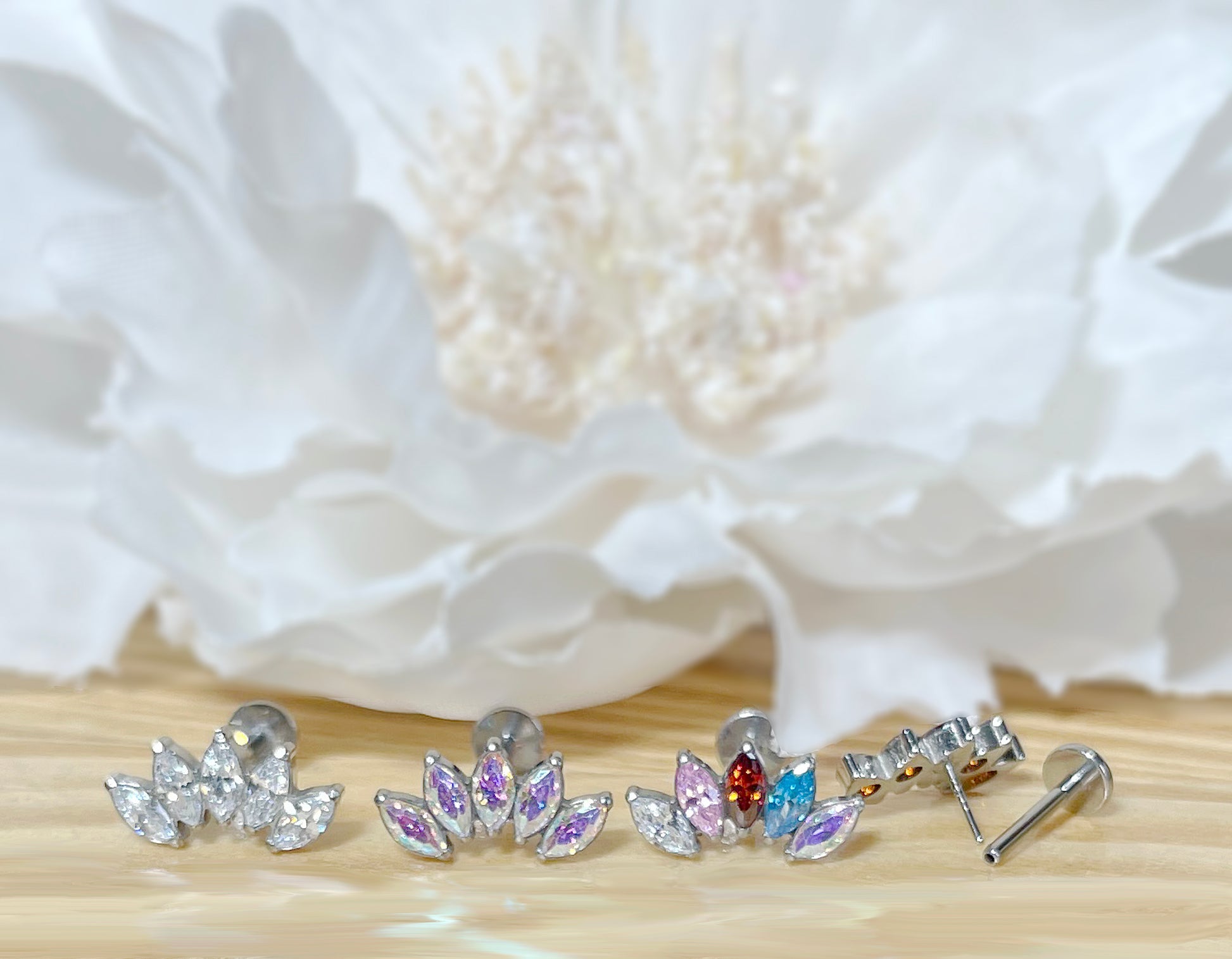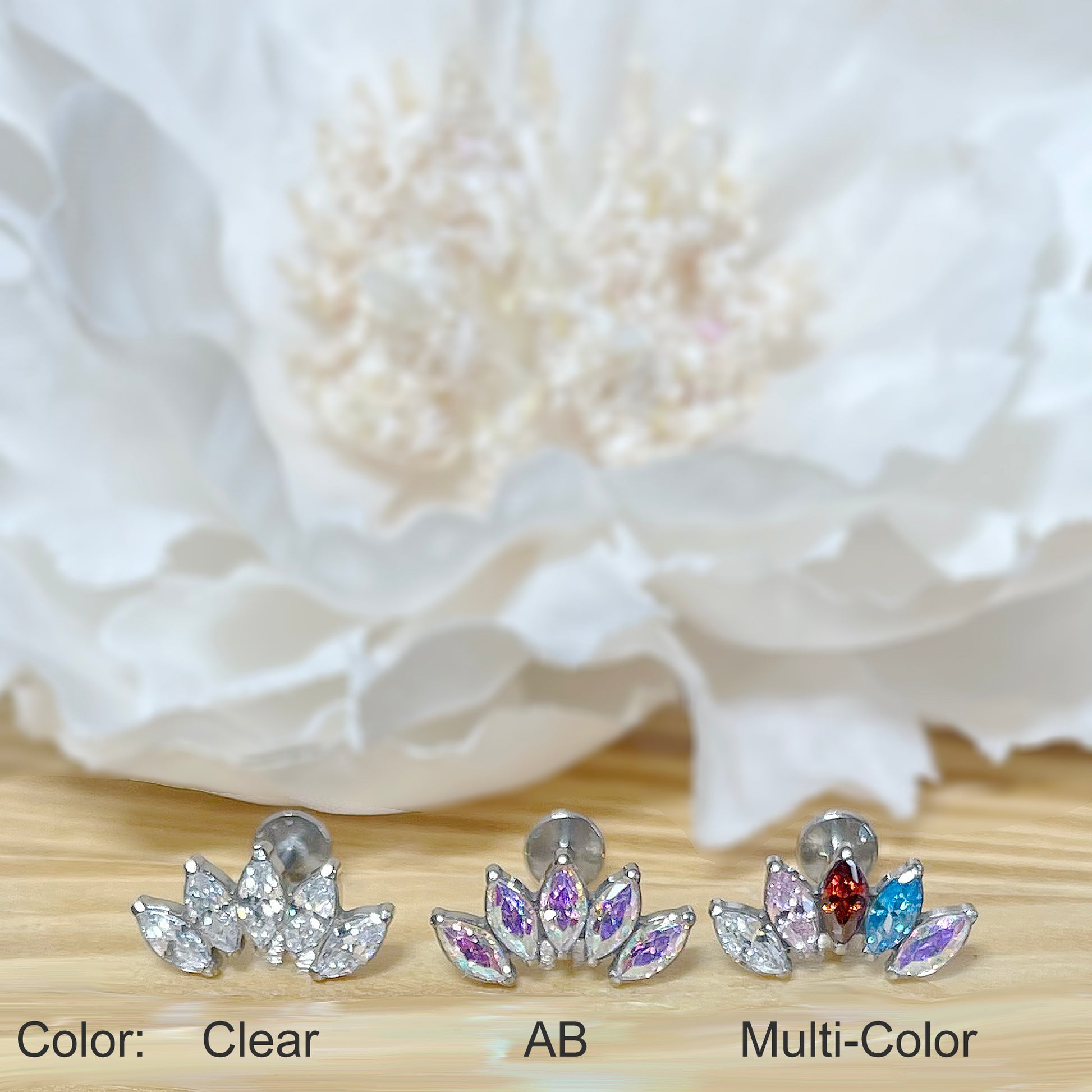 ✨ Titanium 5-Marquise CZ Fan Top Threadless Labret Bar Stud
