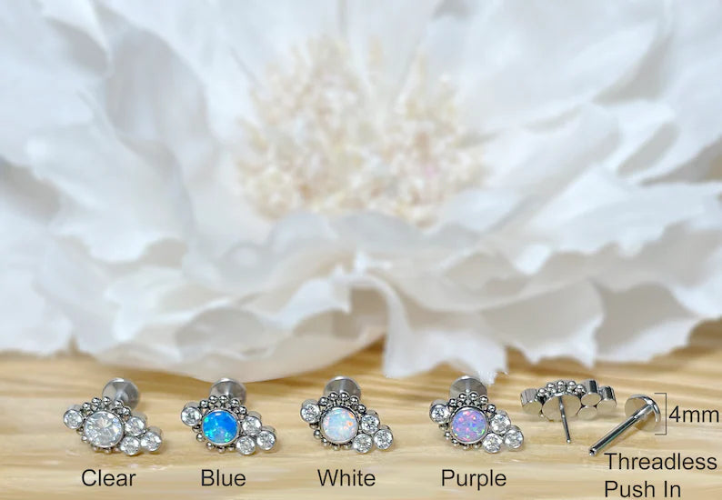 ✨ Titanium CZ Opal Top Threadless Labret Bar