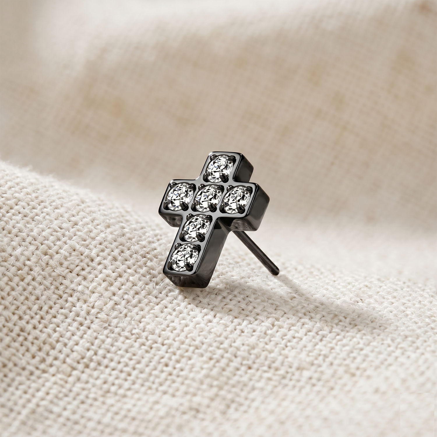 Classic cross design with sparkling CZ stones set into each arm. Clean lines and bright stones make this a standout faith-inspired piece that works beautifully in helix, conch, tragus, or flat piercings. Implant-grade titanium is biocompatible and safe for sensitive skin.