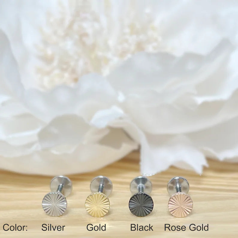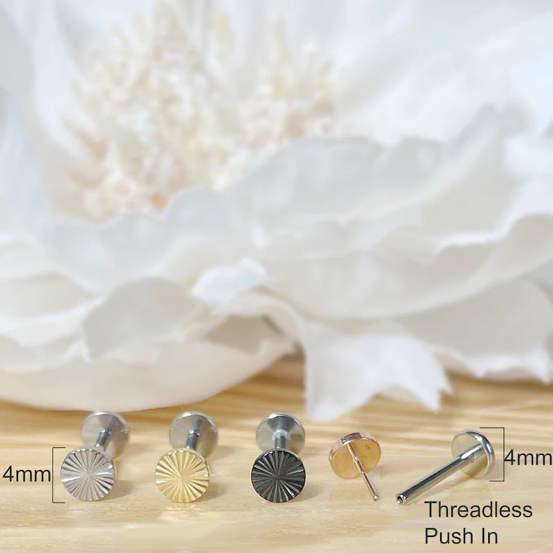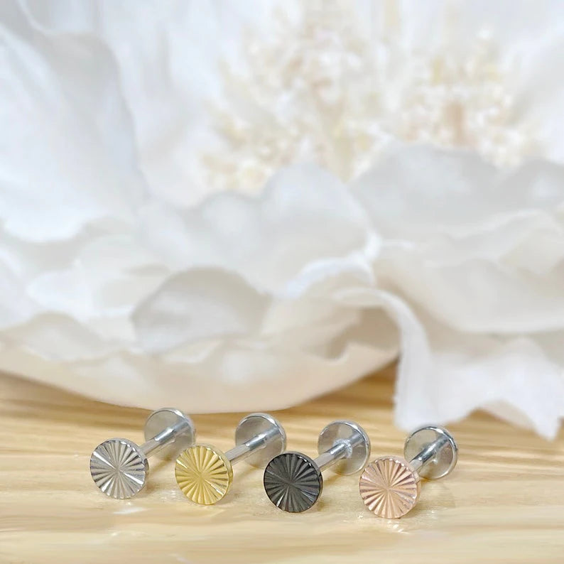 ✨ Titanium Round Circle Dia-Cut Top Threadless Labret Bar