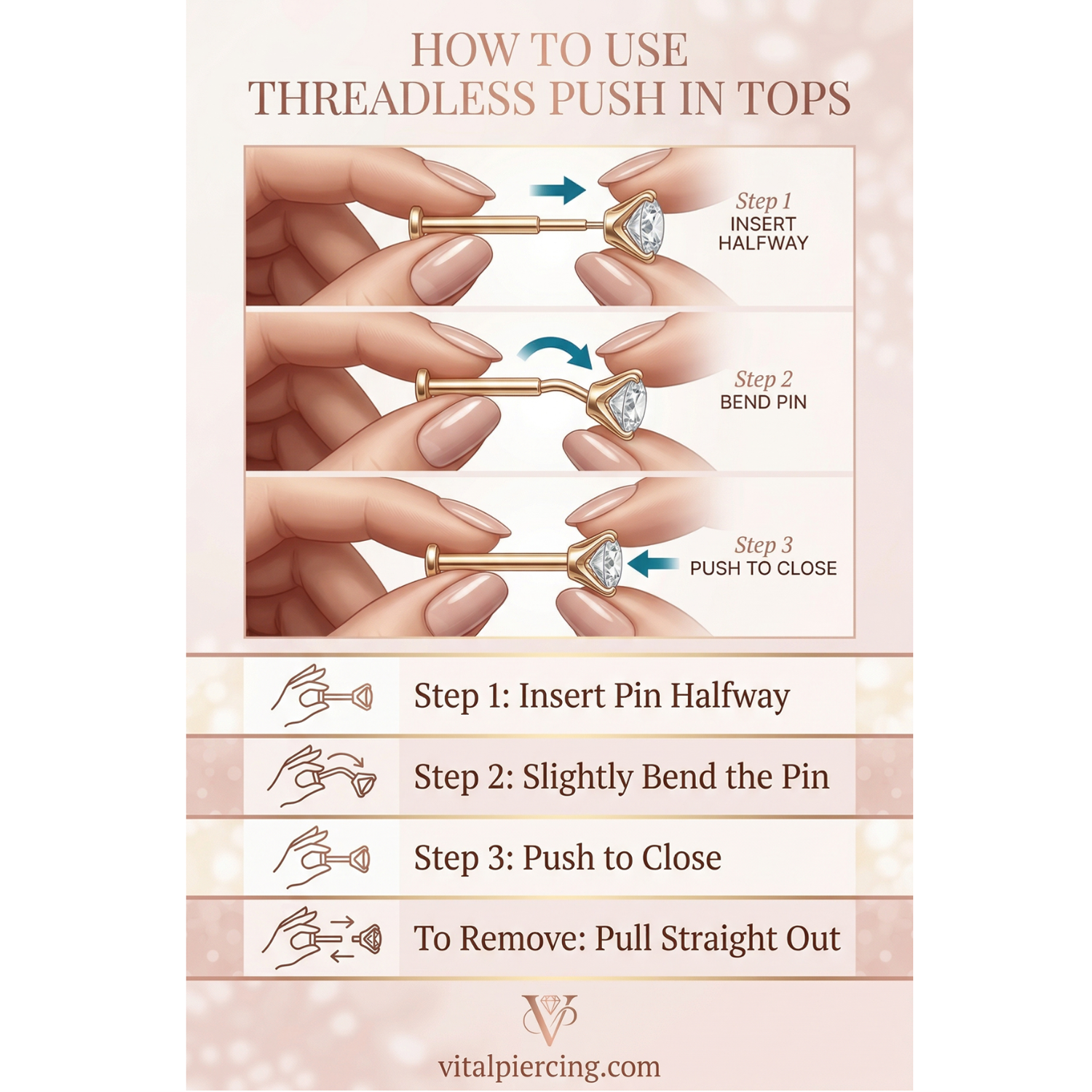 - Threadless push-in system — bend the pin slightly for a secure, custom fit