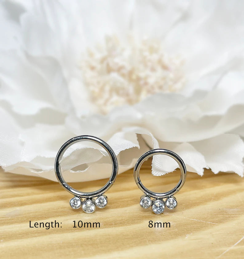 ✨ Titanium 3-Bezel Set CZ Hinged Clicker Hoop 16G