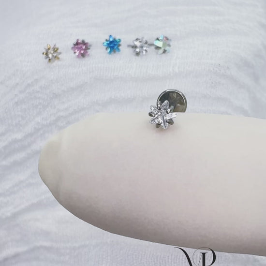 ✨ Titanium Prong-Set Pink Star CZ Top Push-In Labret Bar Stud