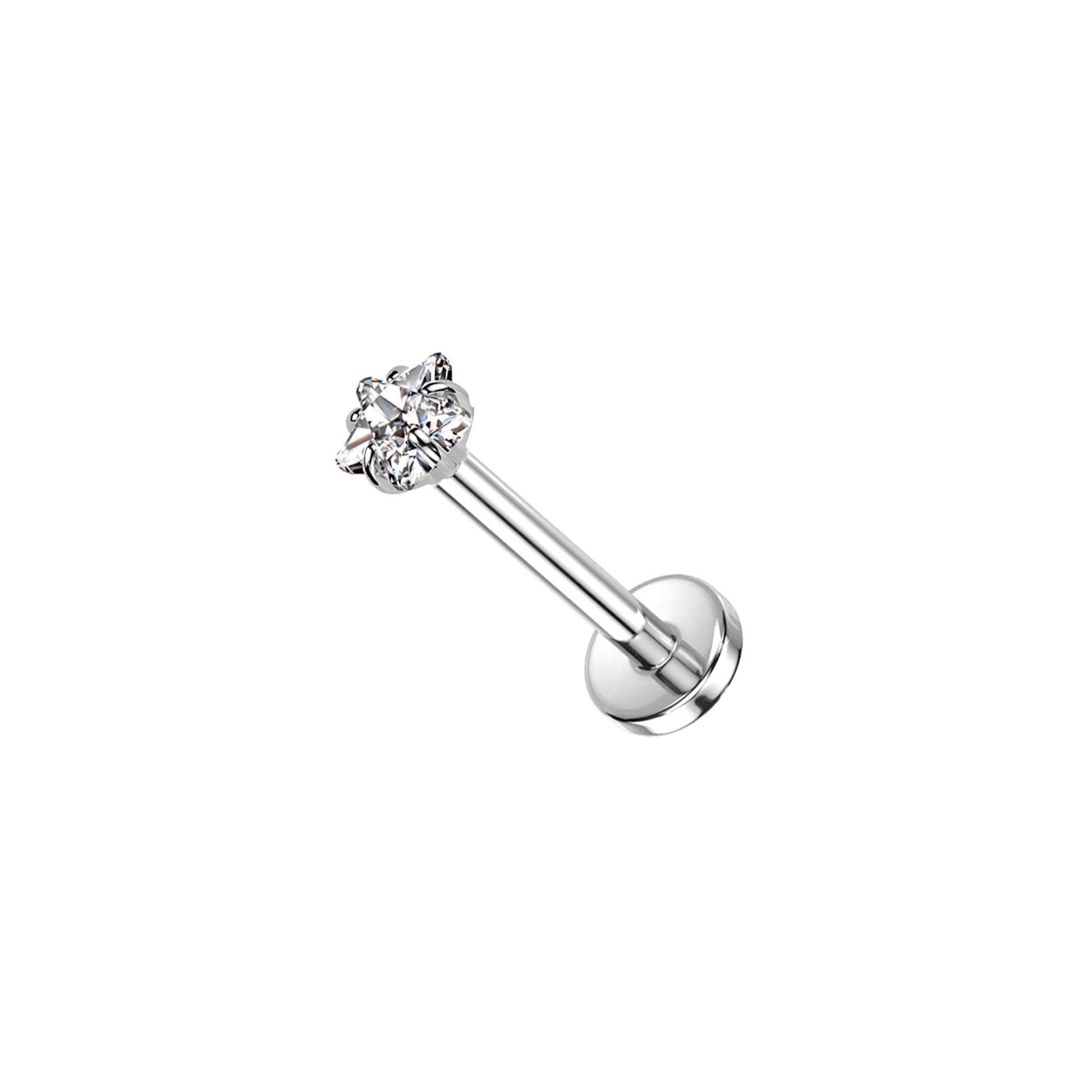 ✨ Titanium Prong-Set Clear Star CZ Top Push-In Labret Bar Stud
