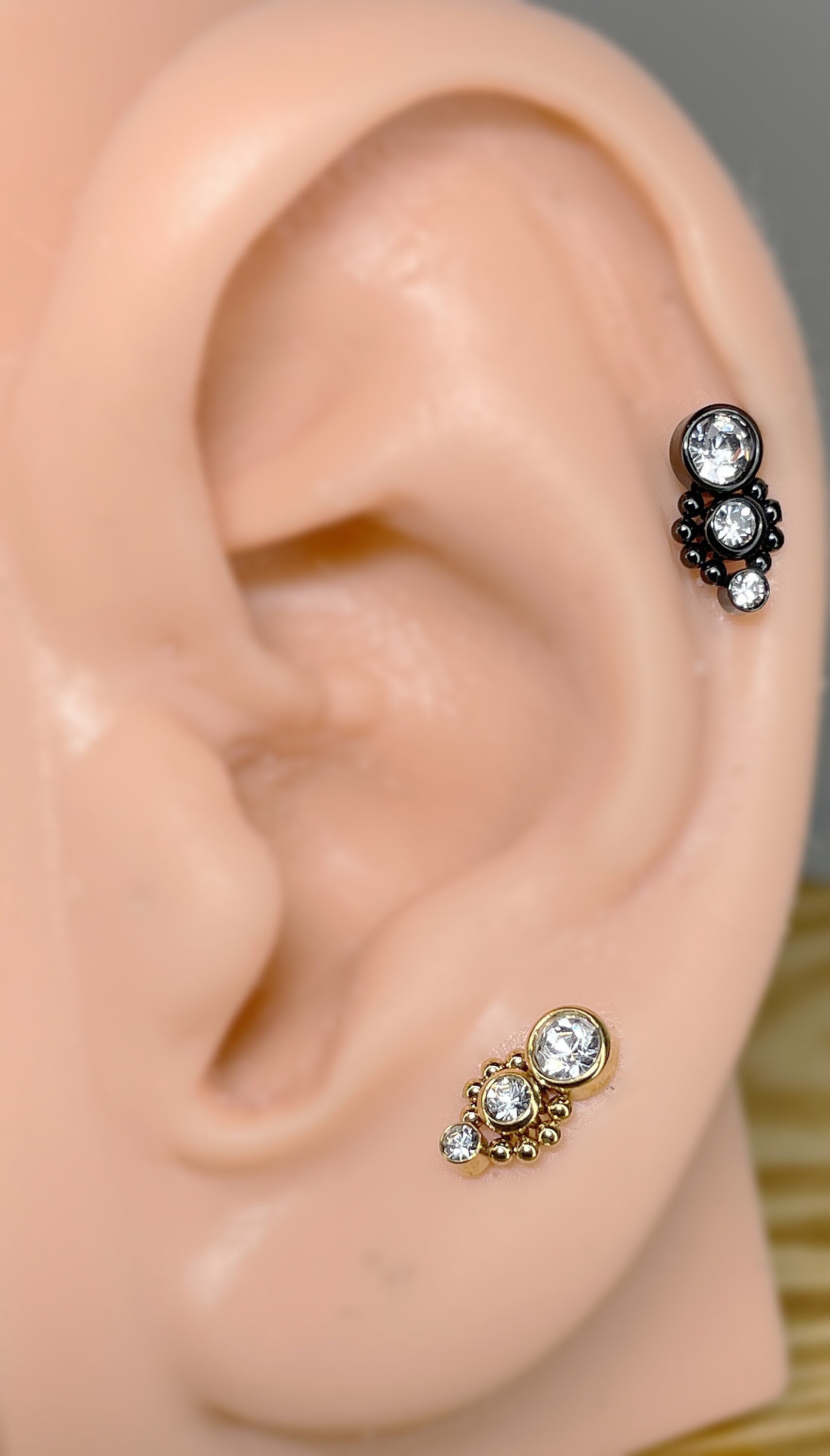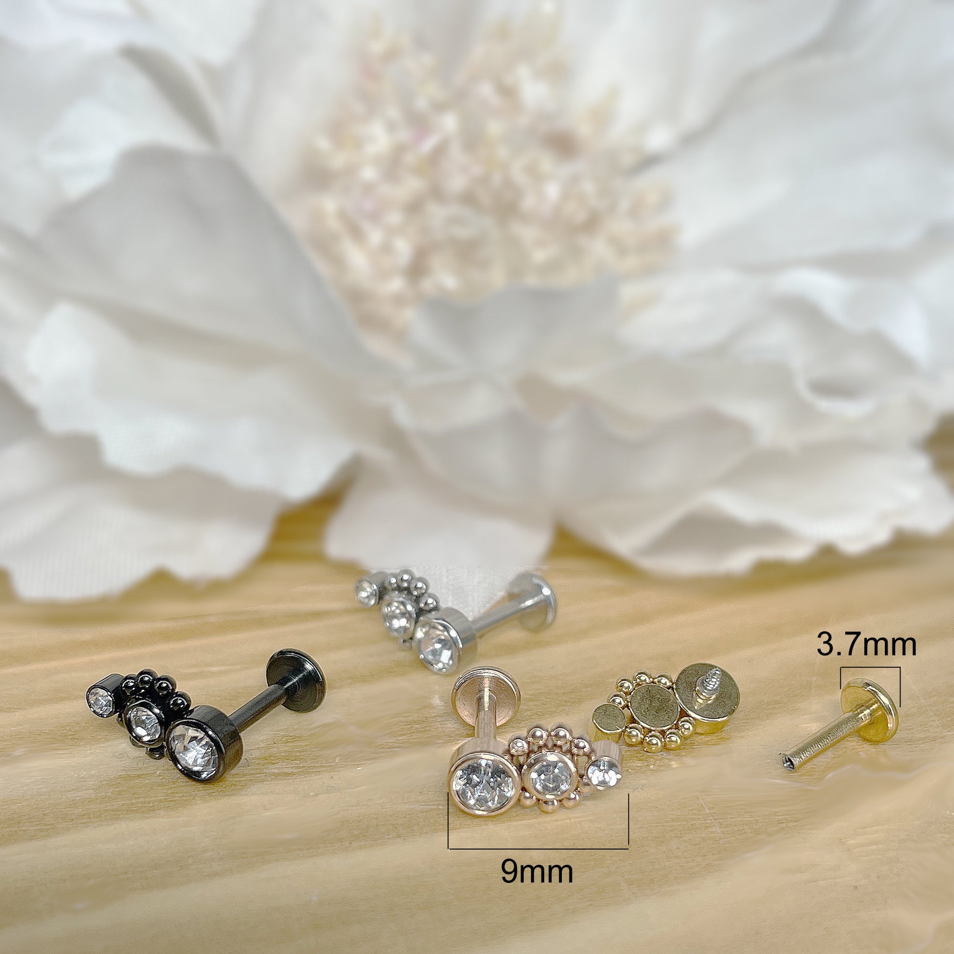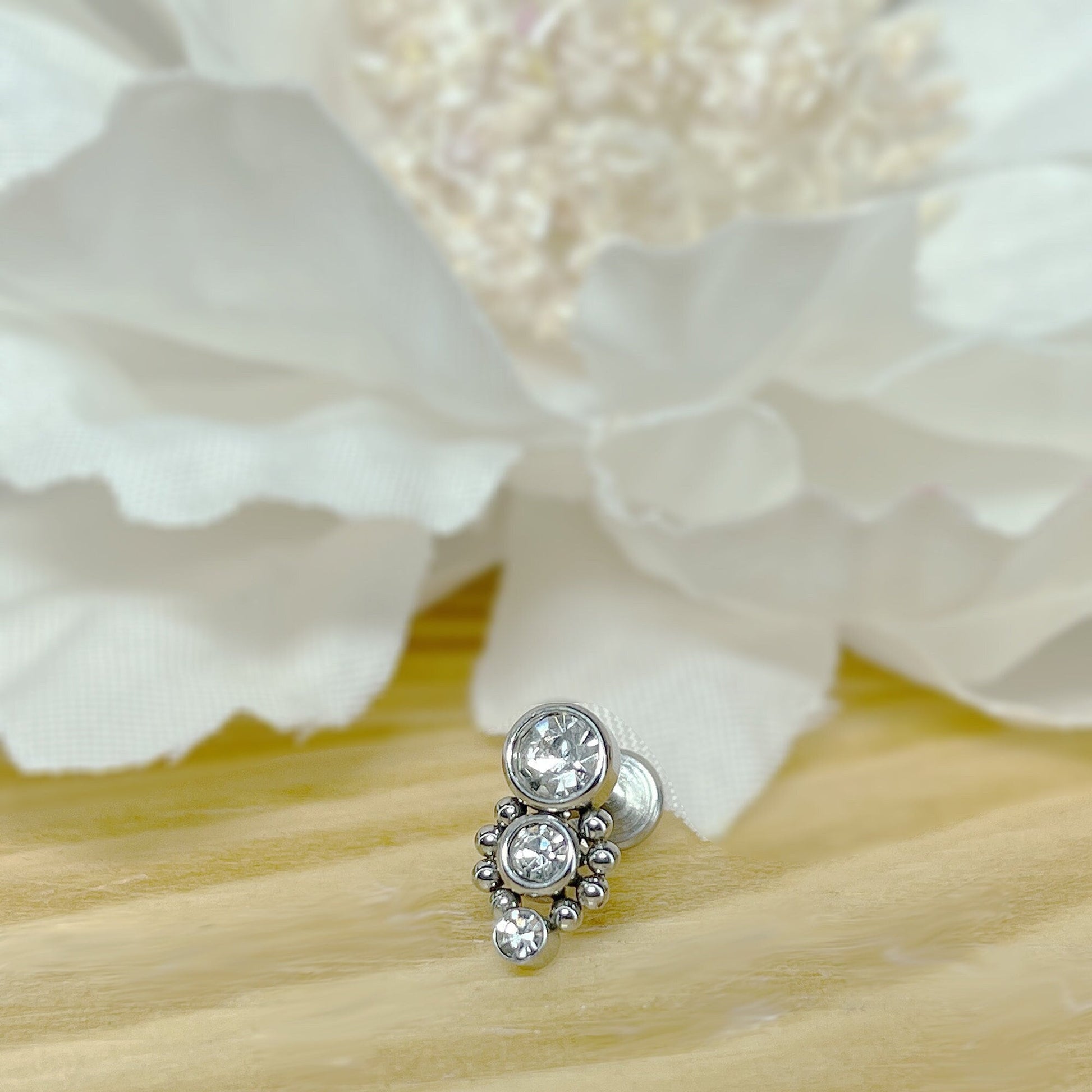 ✨ Surgical Steel Triple CZ with Ball Cluster Internally Threaded Flat Back Labret 16G